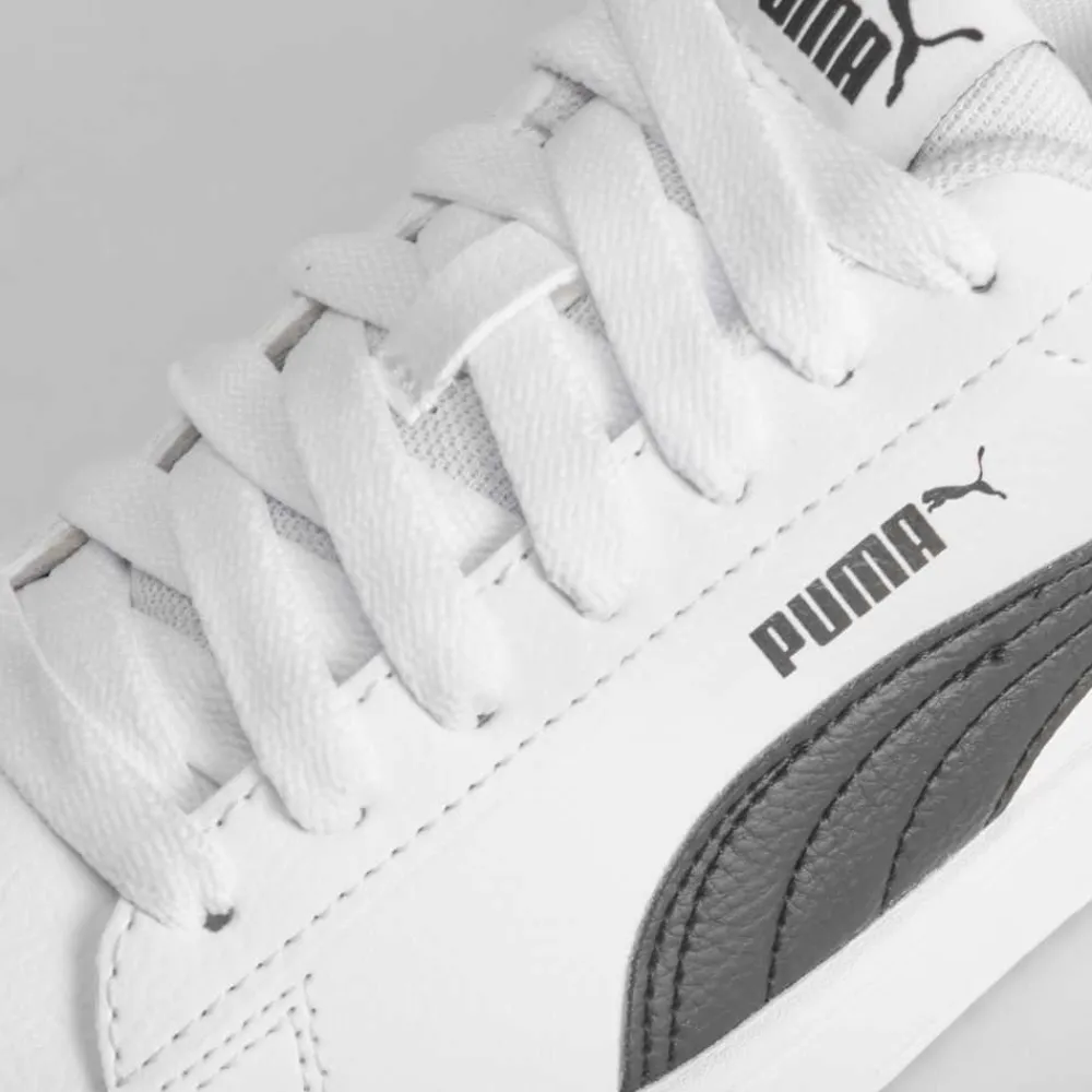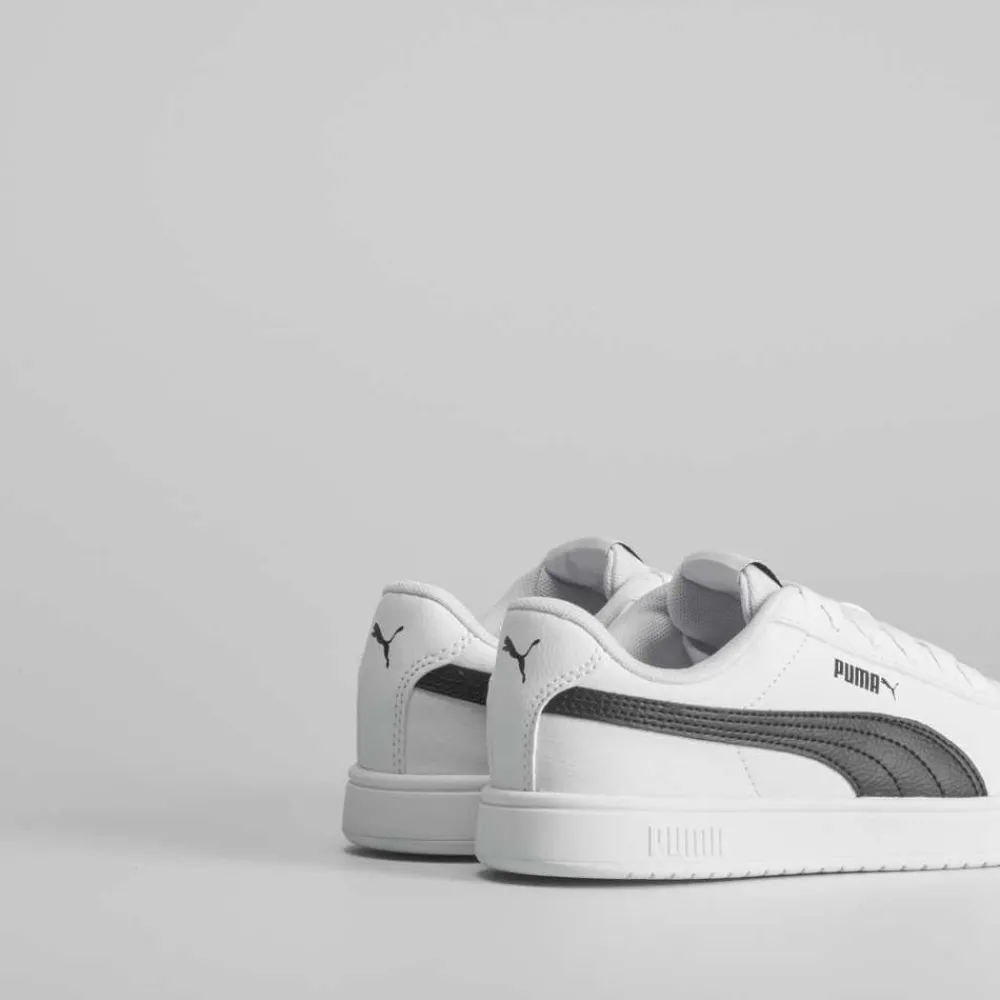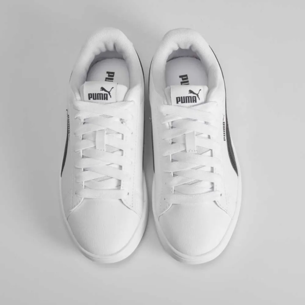 Tenis blanco y negro con cordones de PUMA para niños. Modelo con diseño clásico y funcional.