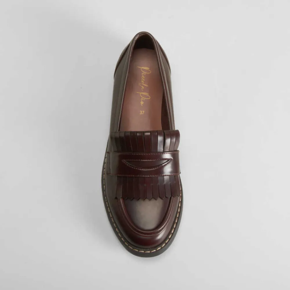 Outlet Mocasín flecos marrón PICCOLA PIU Mujer Mocasines