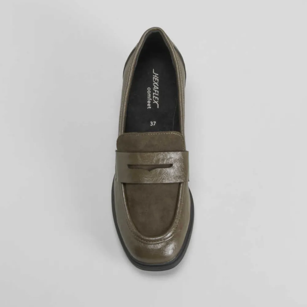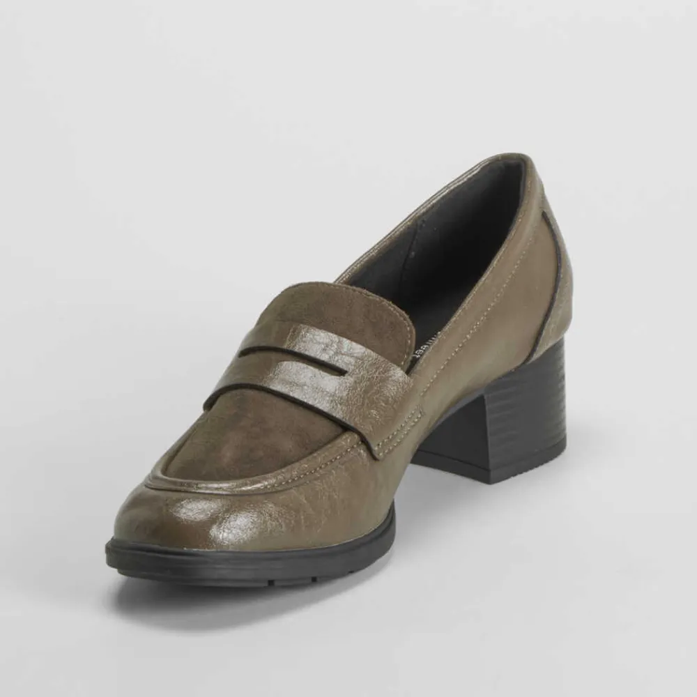Outlet Mocasín tacón kaki Mujer Zapatos Confort|Mocasines