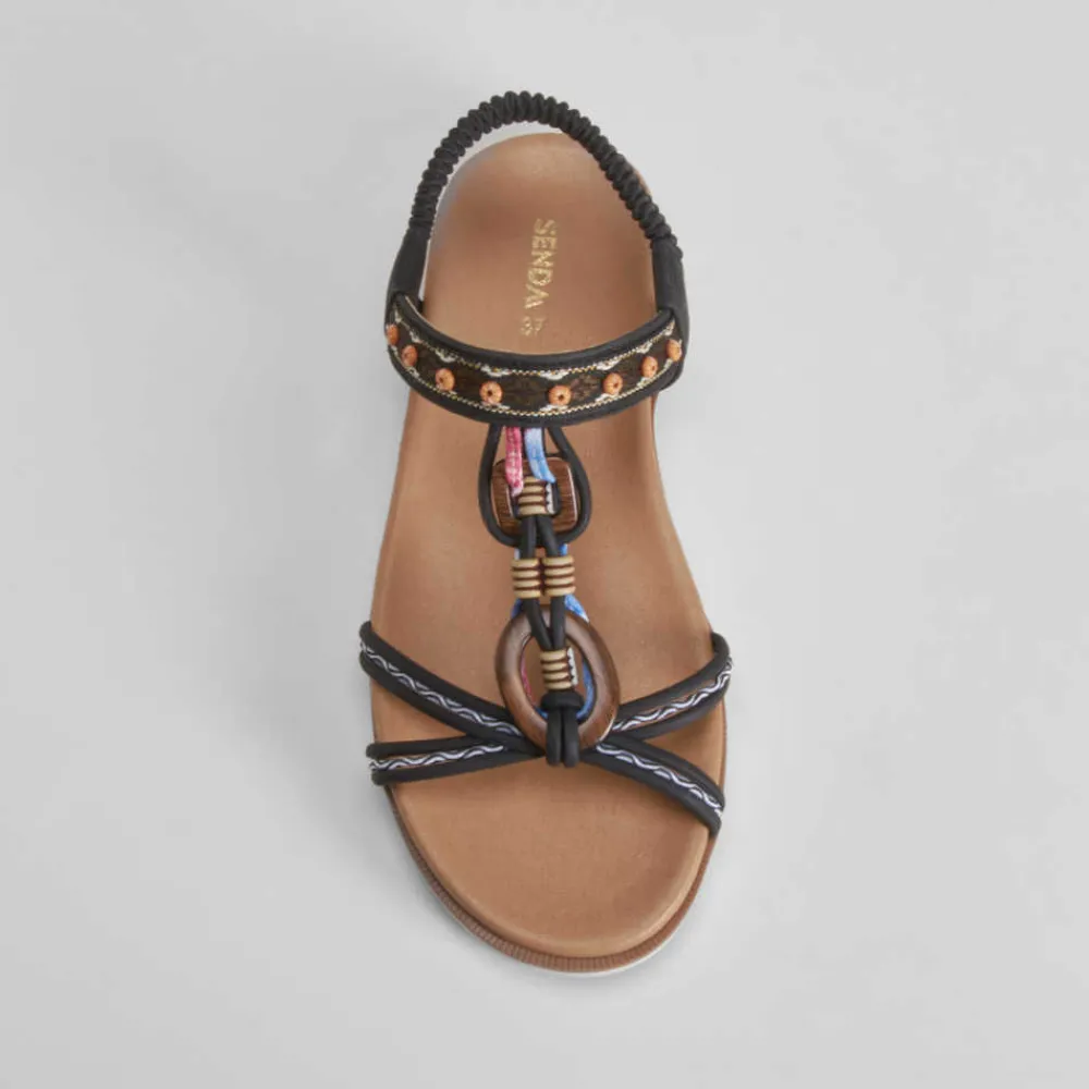 Outlet Sandalia aros madera negra Mujer Sandalias Cuña
