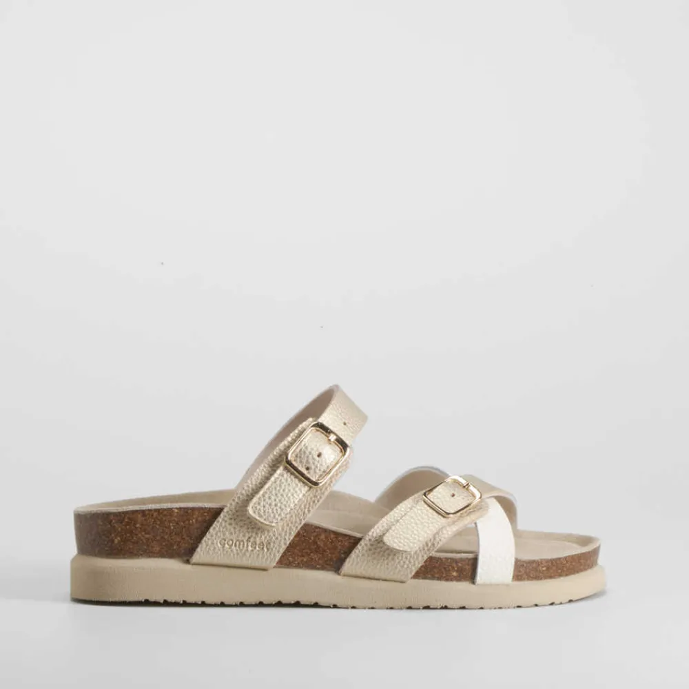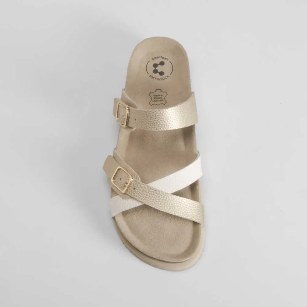 Outlet Sandalia bio cruzada piel oro Mujer Sandalias Bio Y Menorquinas|Sandalias Confort