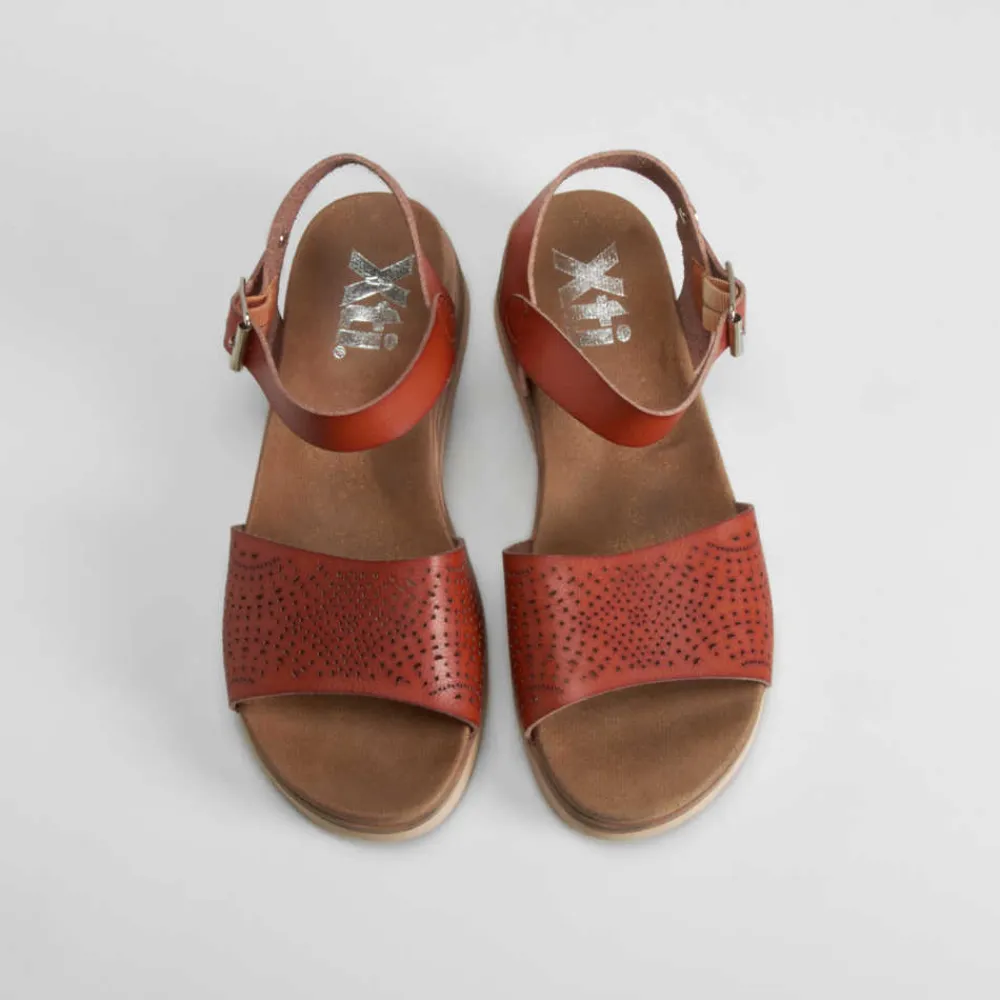 Outlet Sandalia de cuña perfos camel Mujer Sandalias Cuña