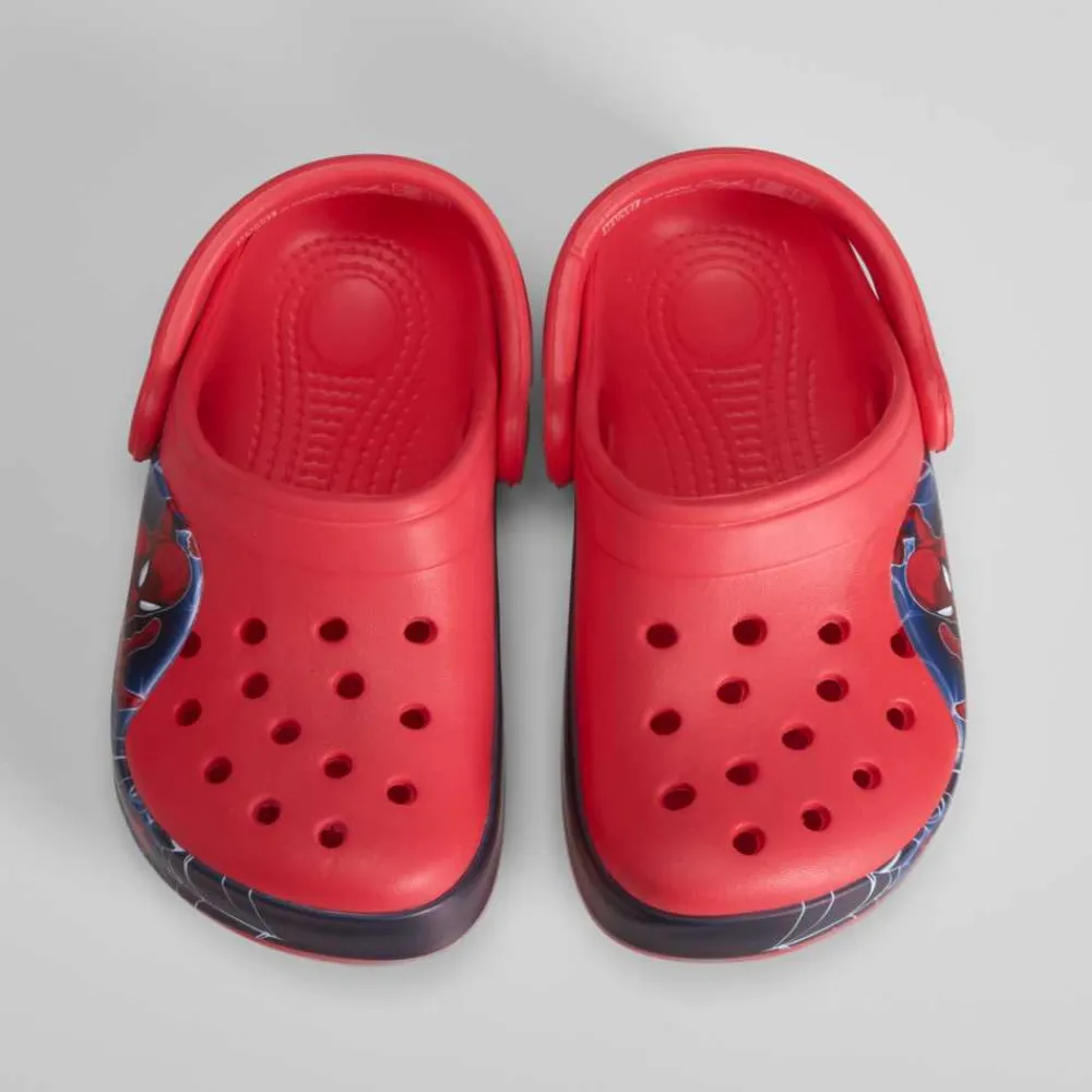 Zueco infantil en color rojo de SPIDERMAN. Perforados en la parte delantera y tira trasera para una mayor sujeción.
