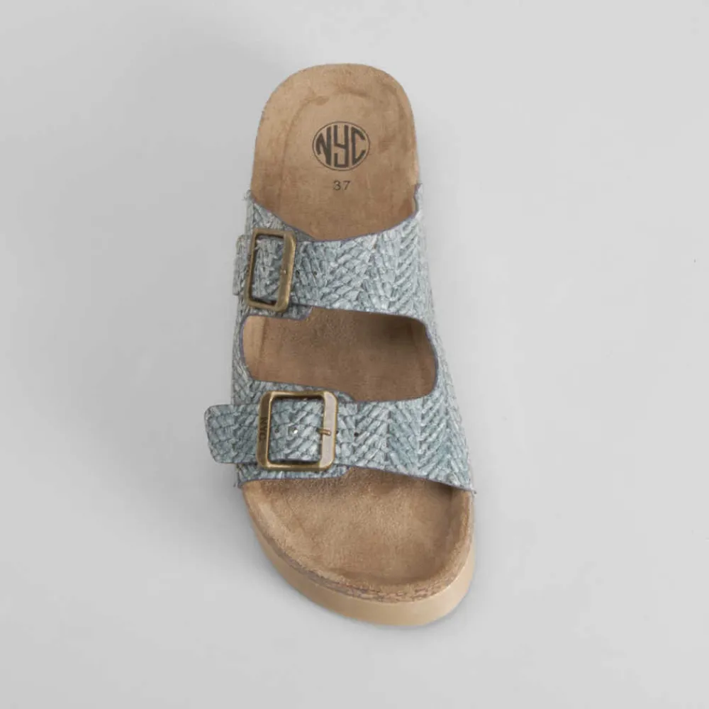 Sale Sandalia bio plataforma rallada azul Mujer Sandalias Bio Y Menorquinas