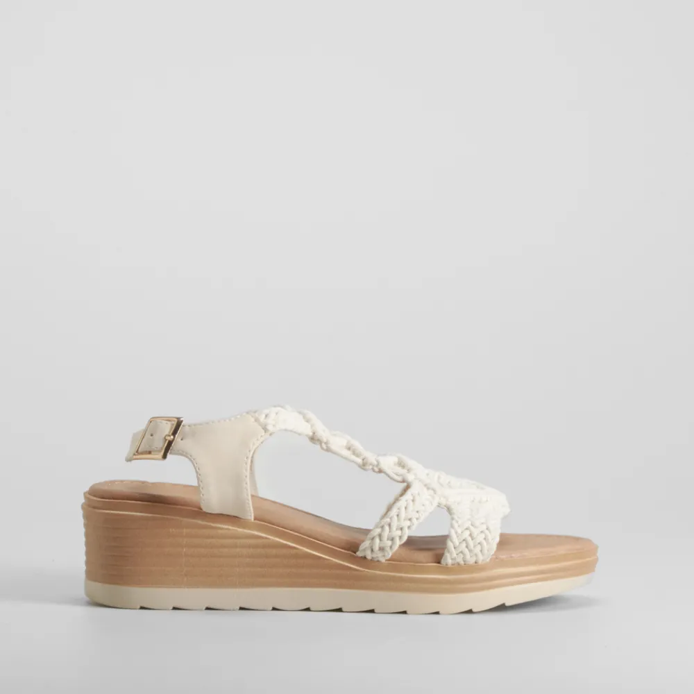 Sale Sandalia cuña macrame beige Mujer Sandalias Cuña