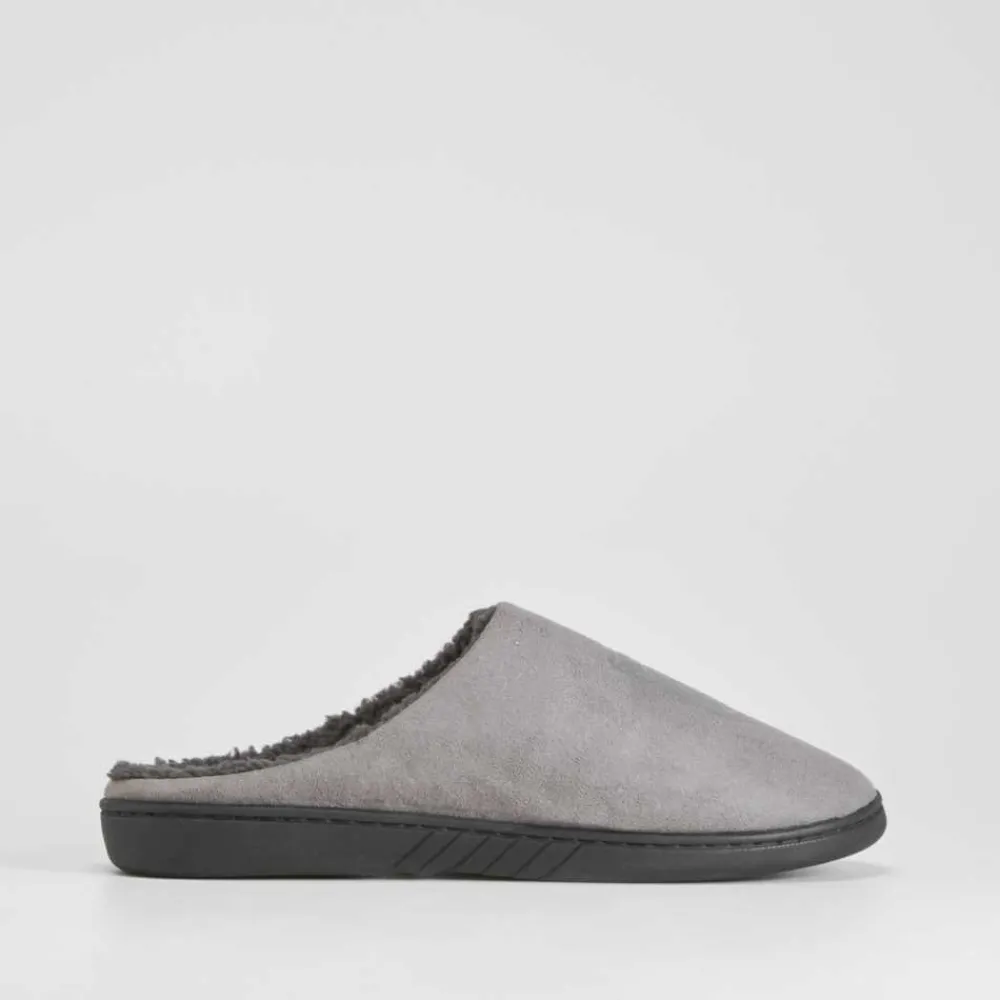 Zapatilla de casa destalonada con escudo de adorno en la pala de la marca OLYNE. Forro interior muy cálido.