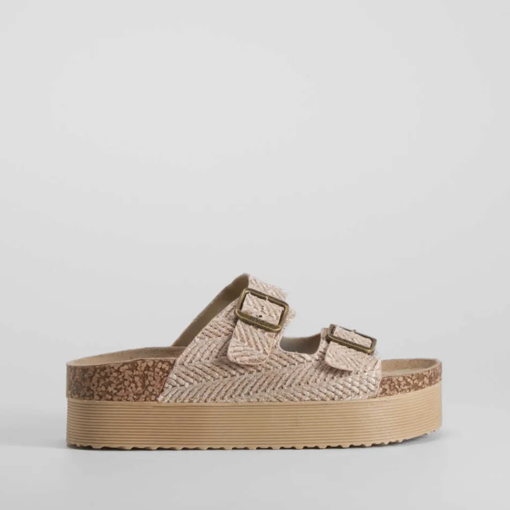 Sandalia bio plataforma rallada rosa Mujer Sandalias Bio Y Menorquinas