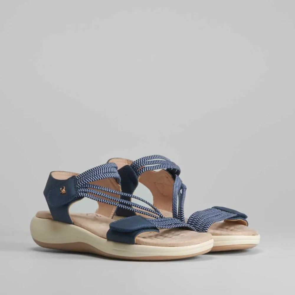 Sandalias sport con velcros en color azul de la marca COMFEET. Corte con dos tiras elásticas finitas.