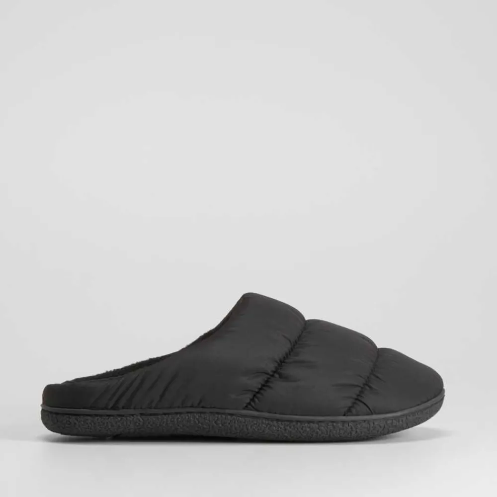 Zapatilla de casa destalonada de la marca OLYNE para niños. Exterior en nylon acolchado con una pieza contrastada en el talón.