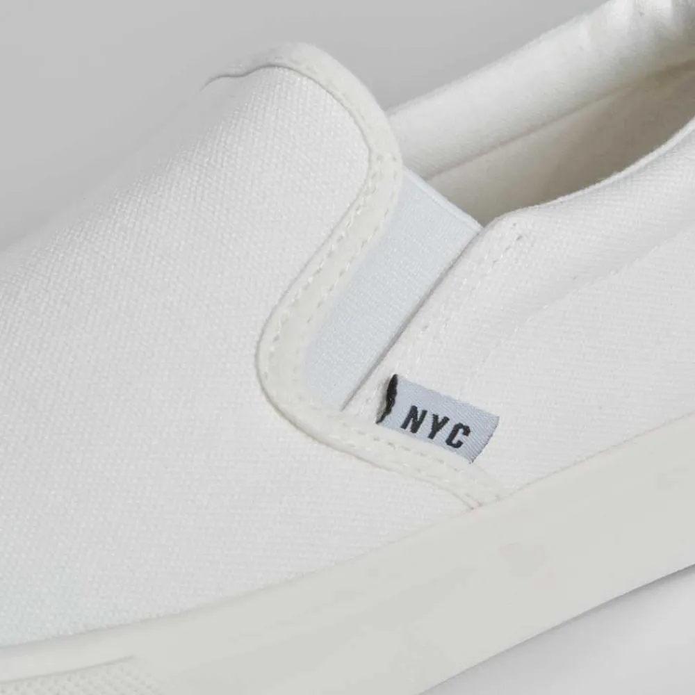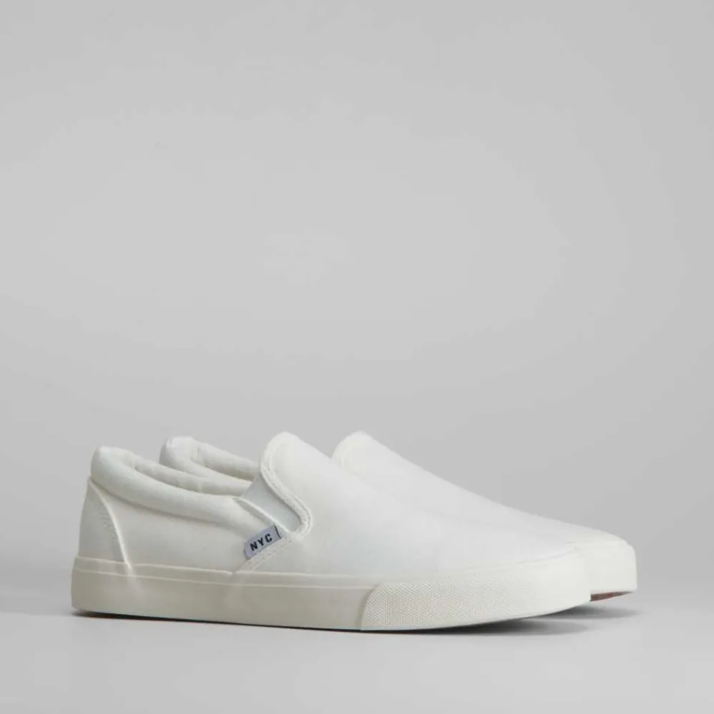 Zapatillas de lona slip on de la marca NYC. Modelo en color blanco con dos elásticos para una mejor adaptación al empeine.