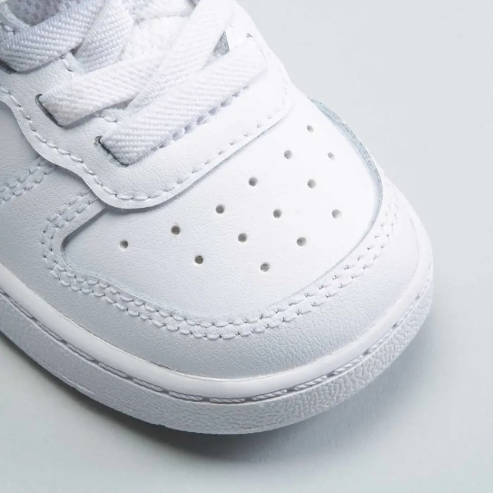 Zapatilla deportiva para bebé BOROUGH LOW de la marca NIKE. Exterior monocolor en color blanco con cordones combinados y tira de velcro para un calce más sencillo.