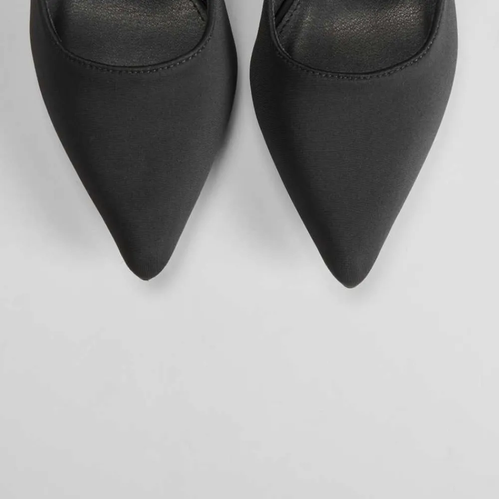Zapato de salón negro de la marca PICCOLA PIU. Modelo satinado acabado en punta. Tacón fino de 9cm de altura.