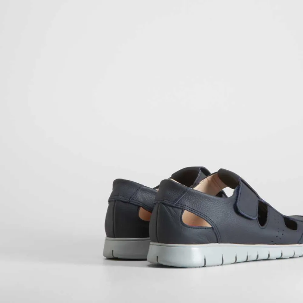 Sandalia cerrada de piel color azul para hombre de la marca COMFEET con un práctico cierre de velcro. Modelo flexible y confortable. Hecho en España.