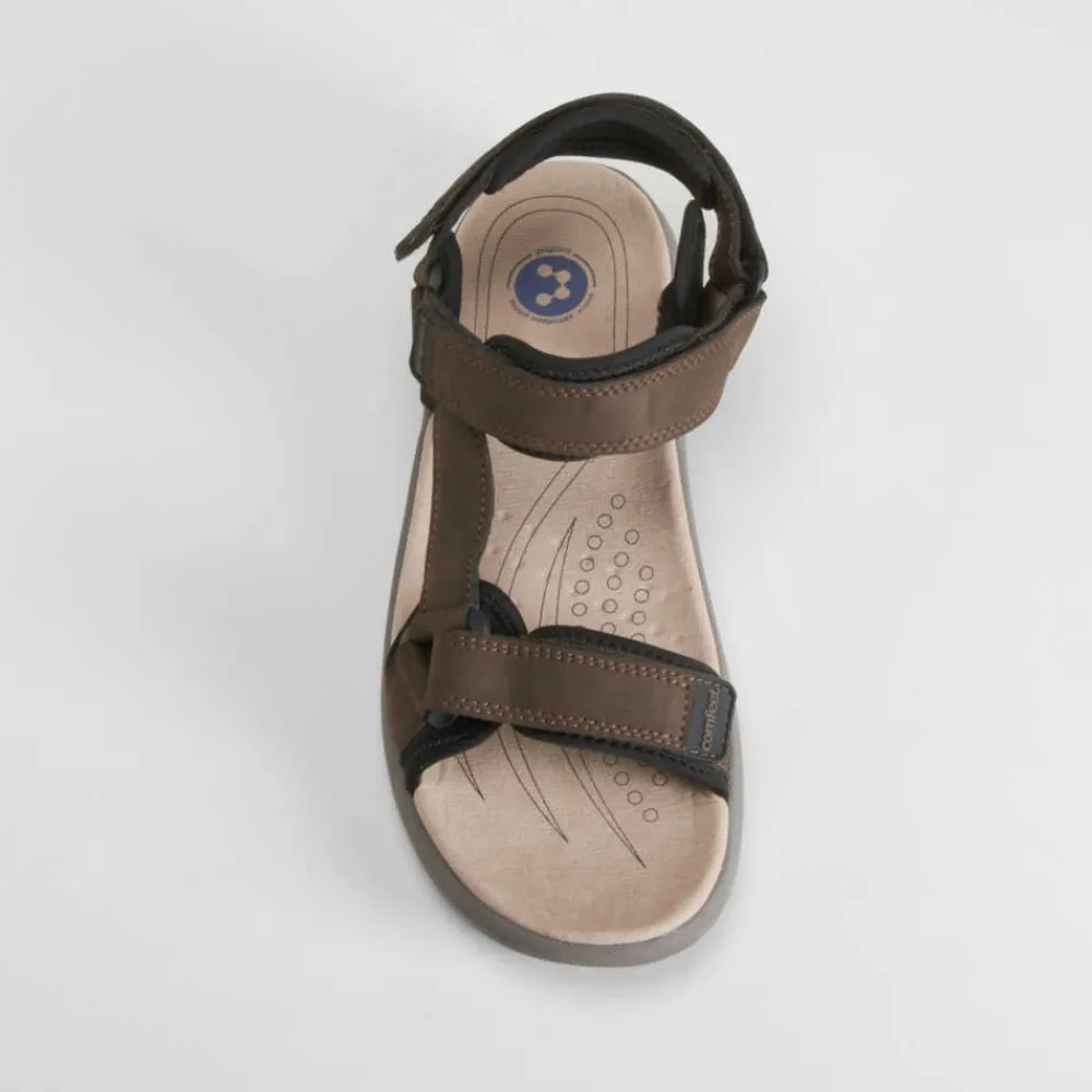 Sandalia californiana sport de la marca COMFEET para hombre. Diseño flexible y ligero con máxima amortiguación. Incorpora tres tiras de velcro para un ajuste óptimo del contorno del pie.
