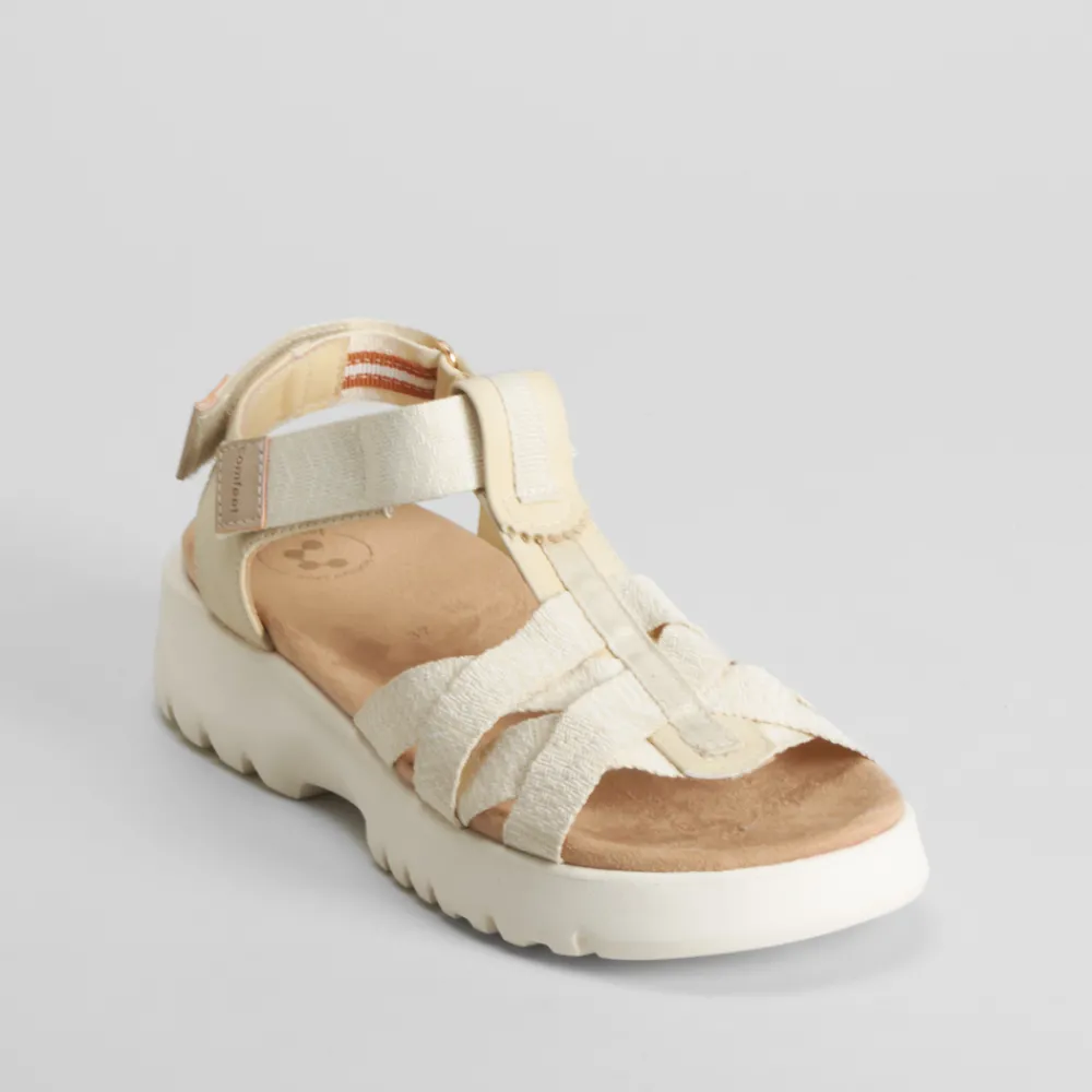 Best Sandalia cuña tiras beige Mujer Sandalias Cuña|Sandalias Confort