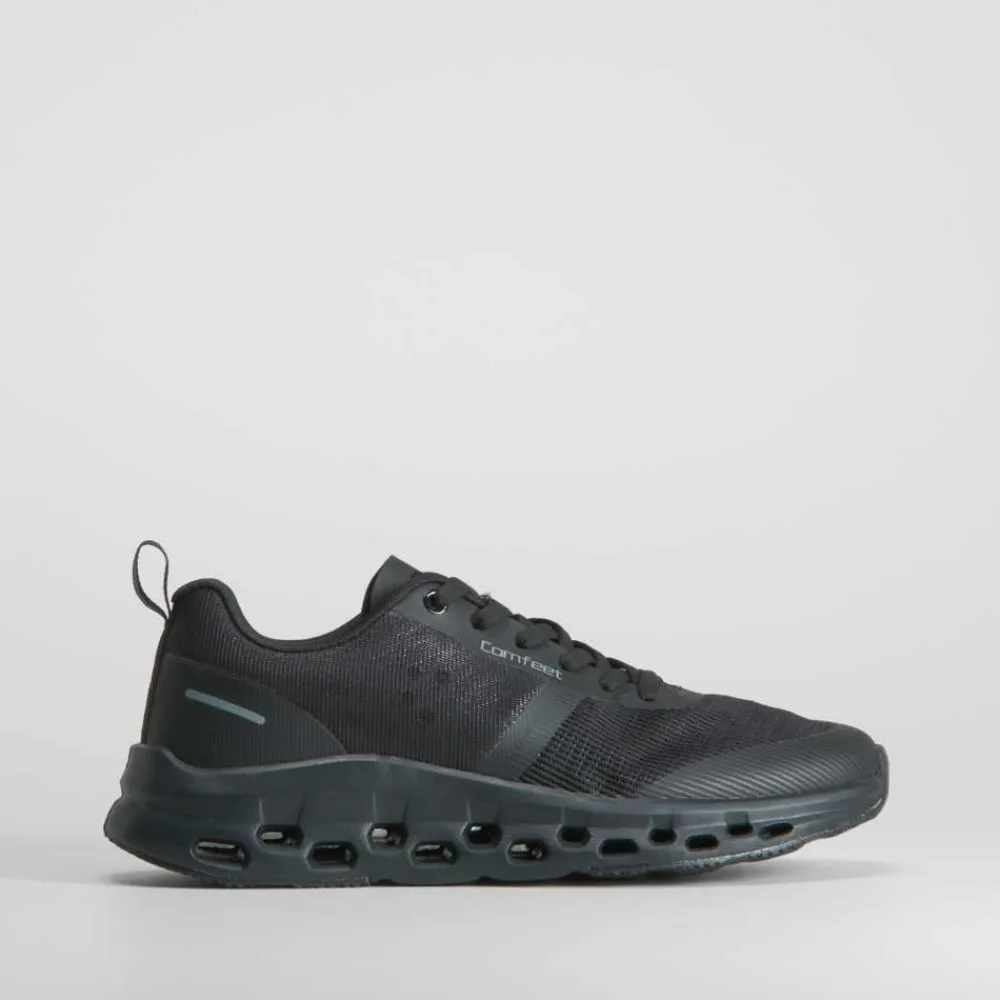La sneaker negra COMFEET es la compañera perfecta para quienes no paran, combinando innovación en confort con un look moderno y funcional.
