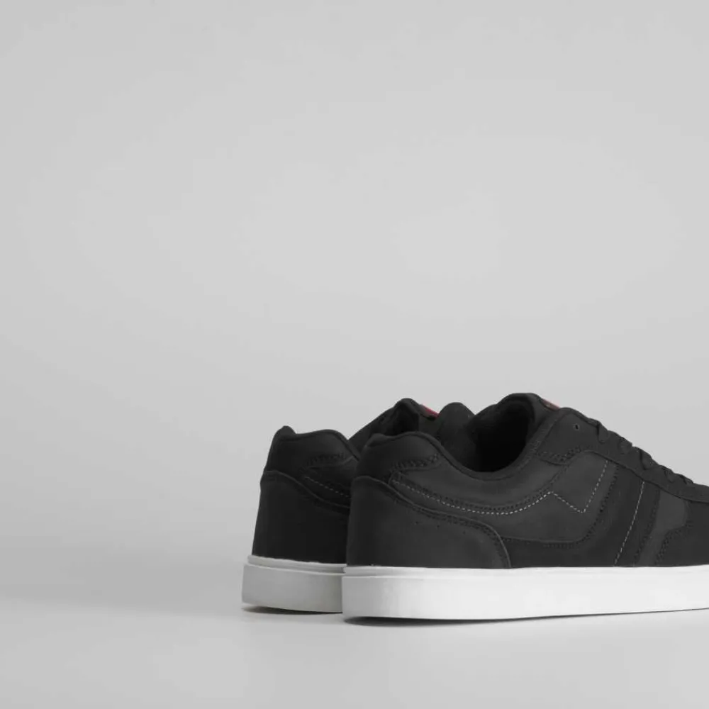 Zapatilla urbana de hombre de la marca NYC en color negro. Modelo con cordones y cosidos entonados.