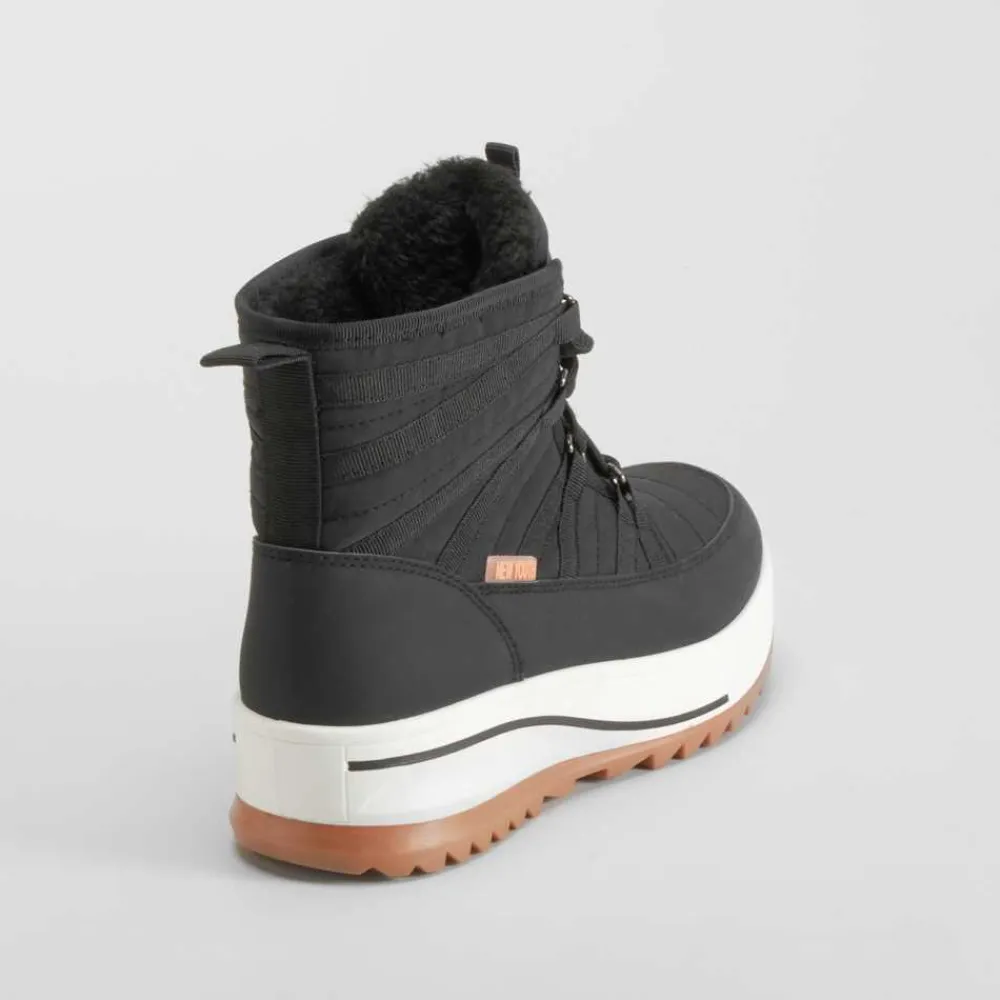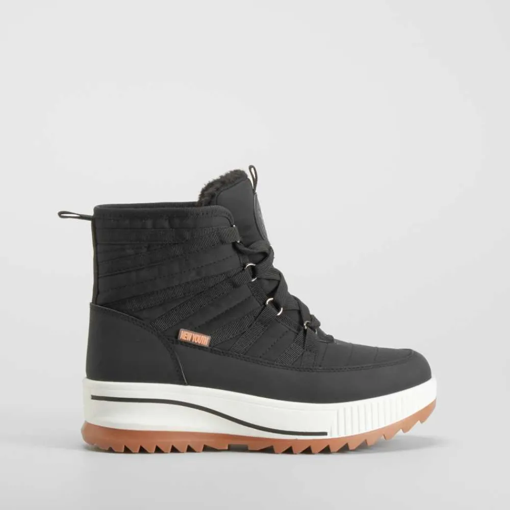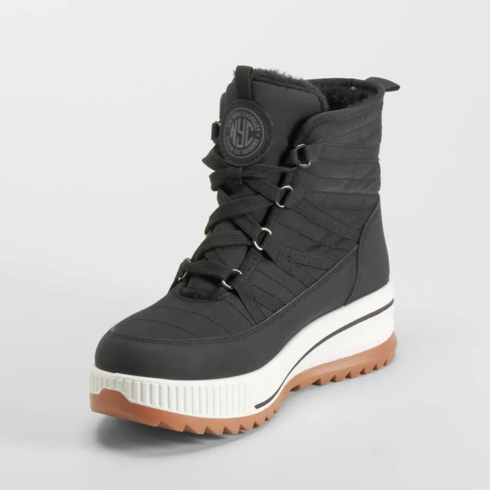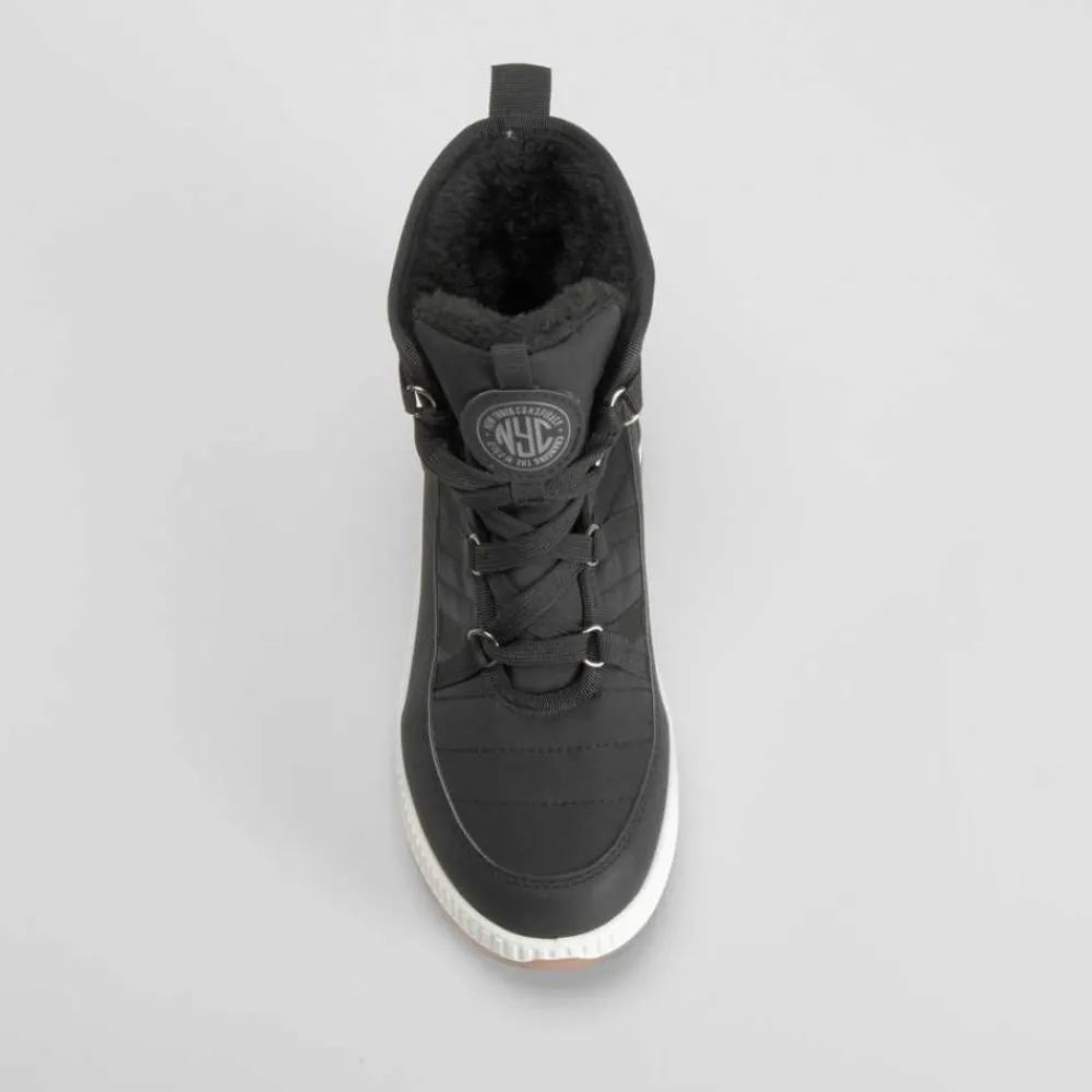 Este botín de nieve acordonado NYC es la elección perfecta para los días más fríos, combinando estilo urbano y funcionalidad. Con un diseño moderno en color negro, presenta detalles acordonados que aseguran un ajuste cómodo y seguro, ideal para actividades en exteriores y condiciones invernales.