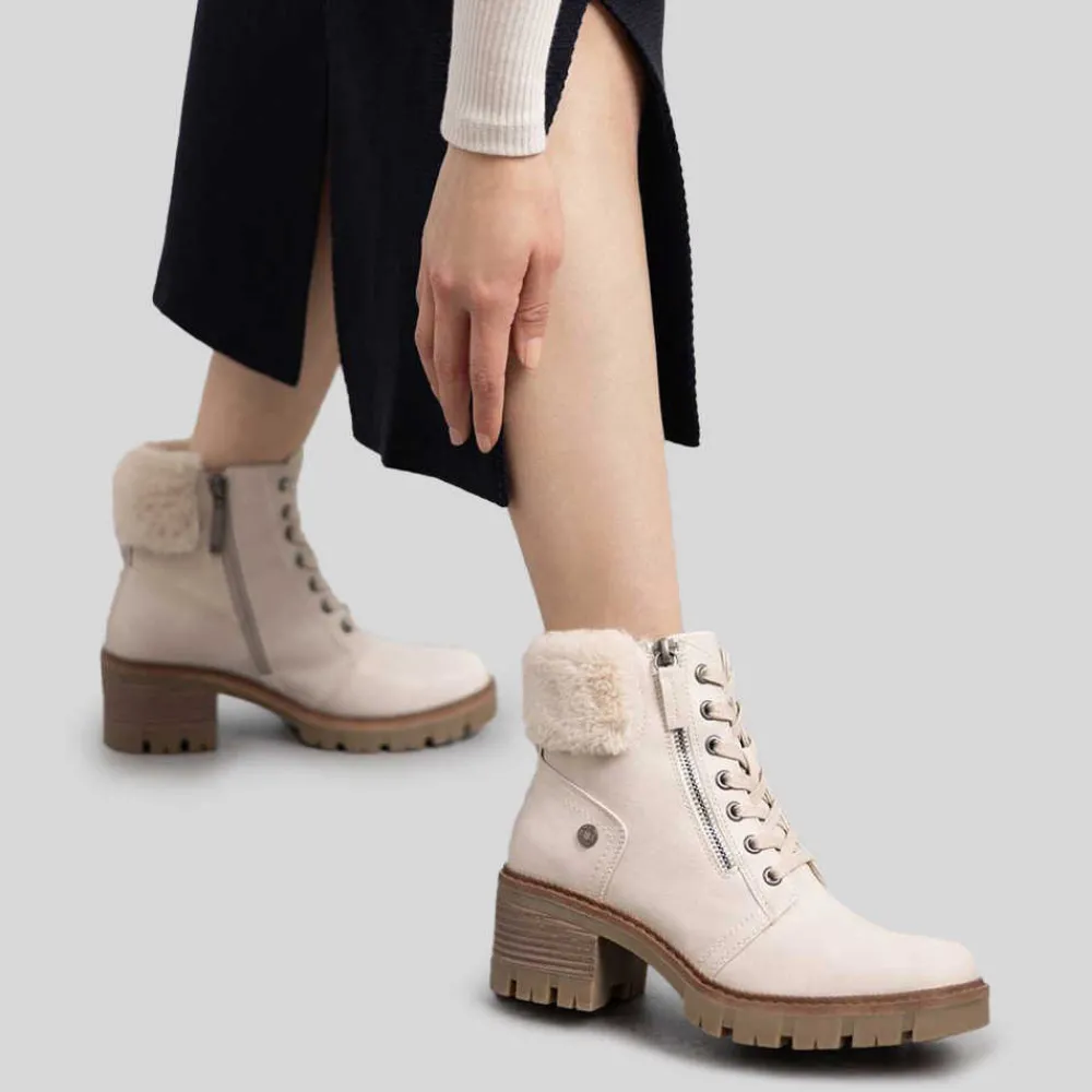 Botín tacón cuello pelo beige Mujer Botines Tacón