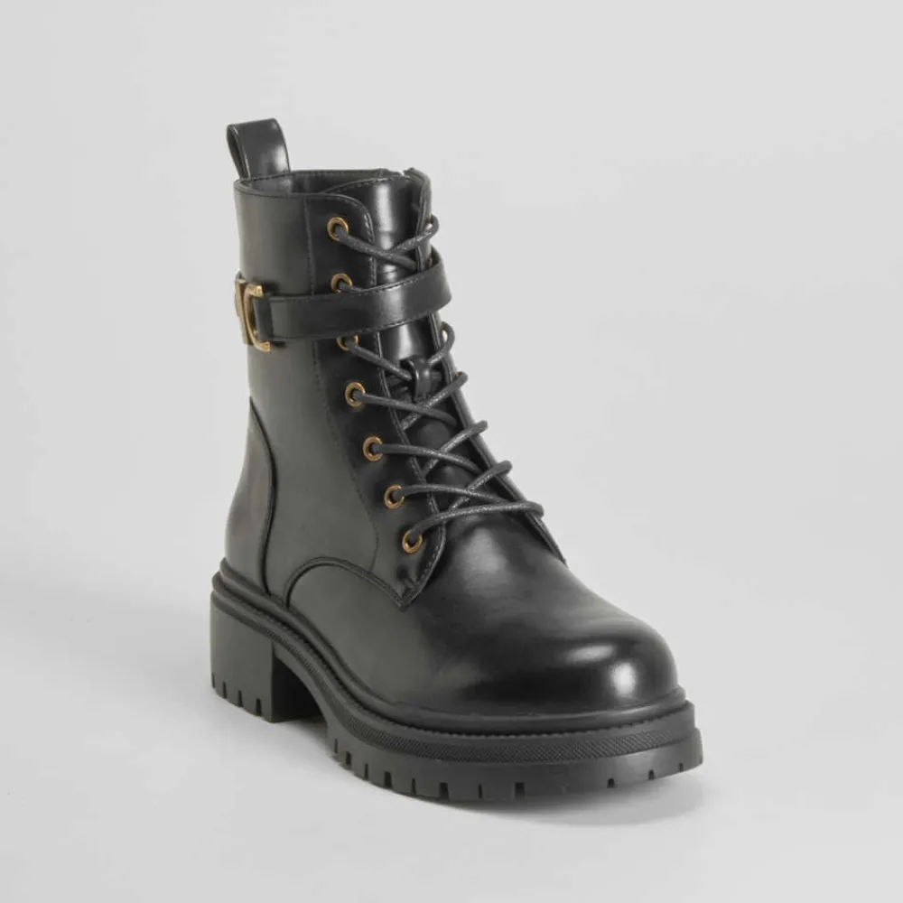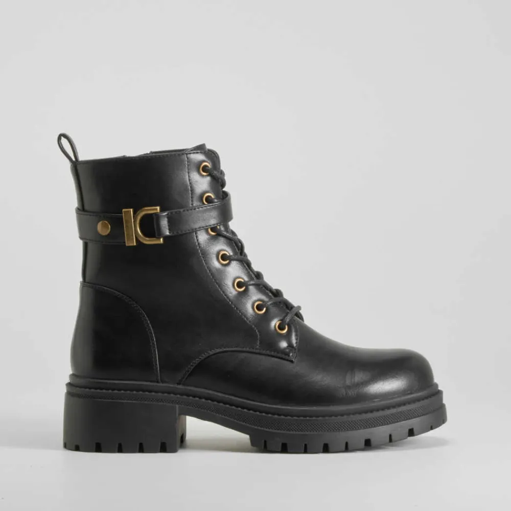 Clearance Botín acordonado negro PICCOLA PIU Mujer Botines Planos