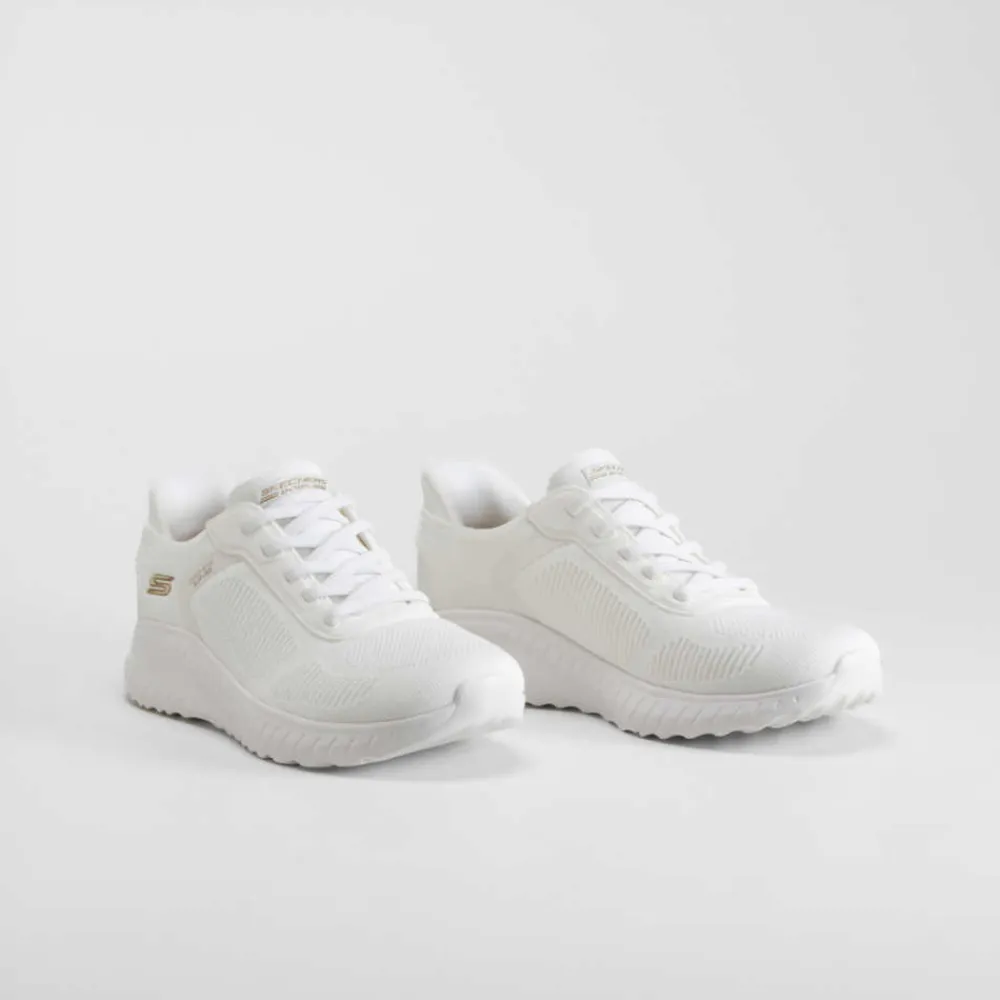 Este modelo es una zapatilla deportiva de color blanco, con diseño clásico y detalles discretos en todo el exterior. Su estructura presenta cordones y una suela cómoda, pensada para ofrecer buen soporte. La marca SKECHERS garantiza calidad y estilo en cada paso.
