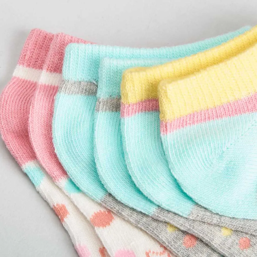 Pack de cinco pares de calcetines invisibles de la marca MERKAL con estampado de gatitos y varios colores.