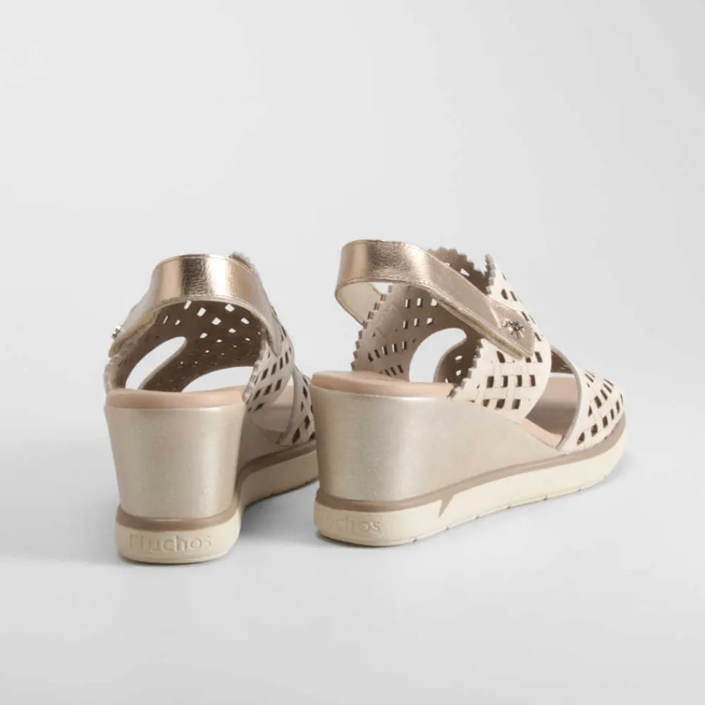 Clearance Sandalia de cuña smash de piel beige Mujer Sandalias Cuña|Sandalias Confort