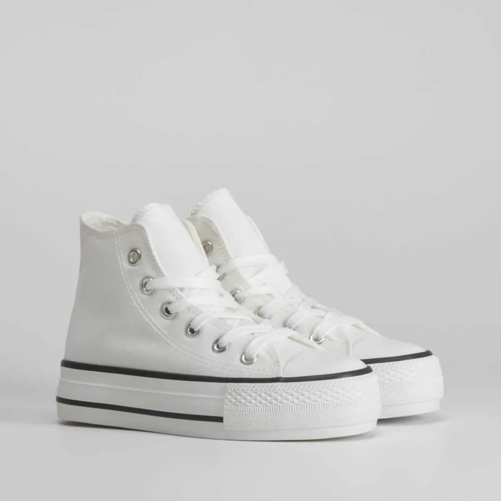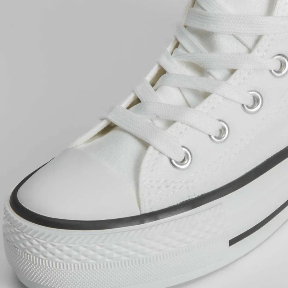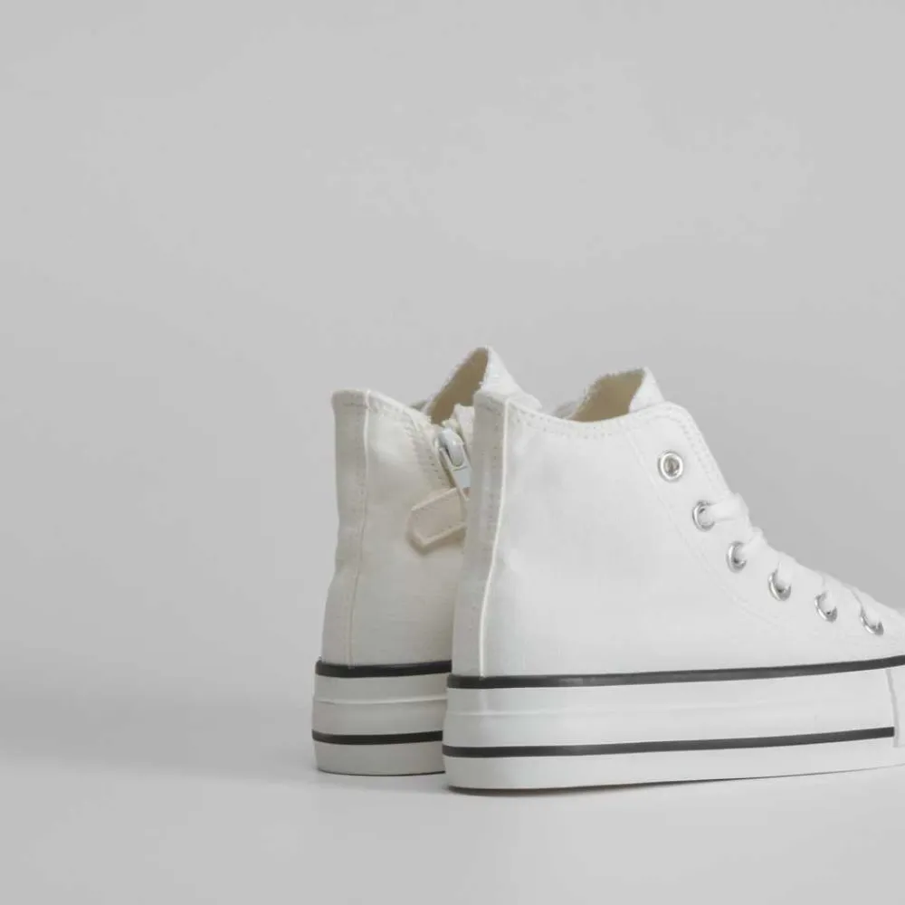Zapatilla de lona alta en color blanco de OH GIRL para niñas. Modelo con cordones y cierre de cremallera lateral.