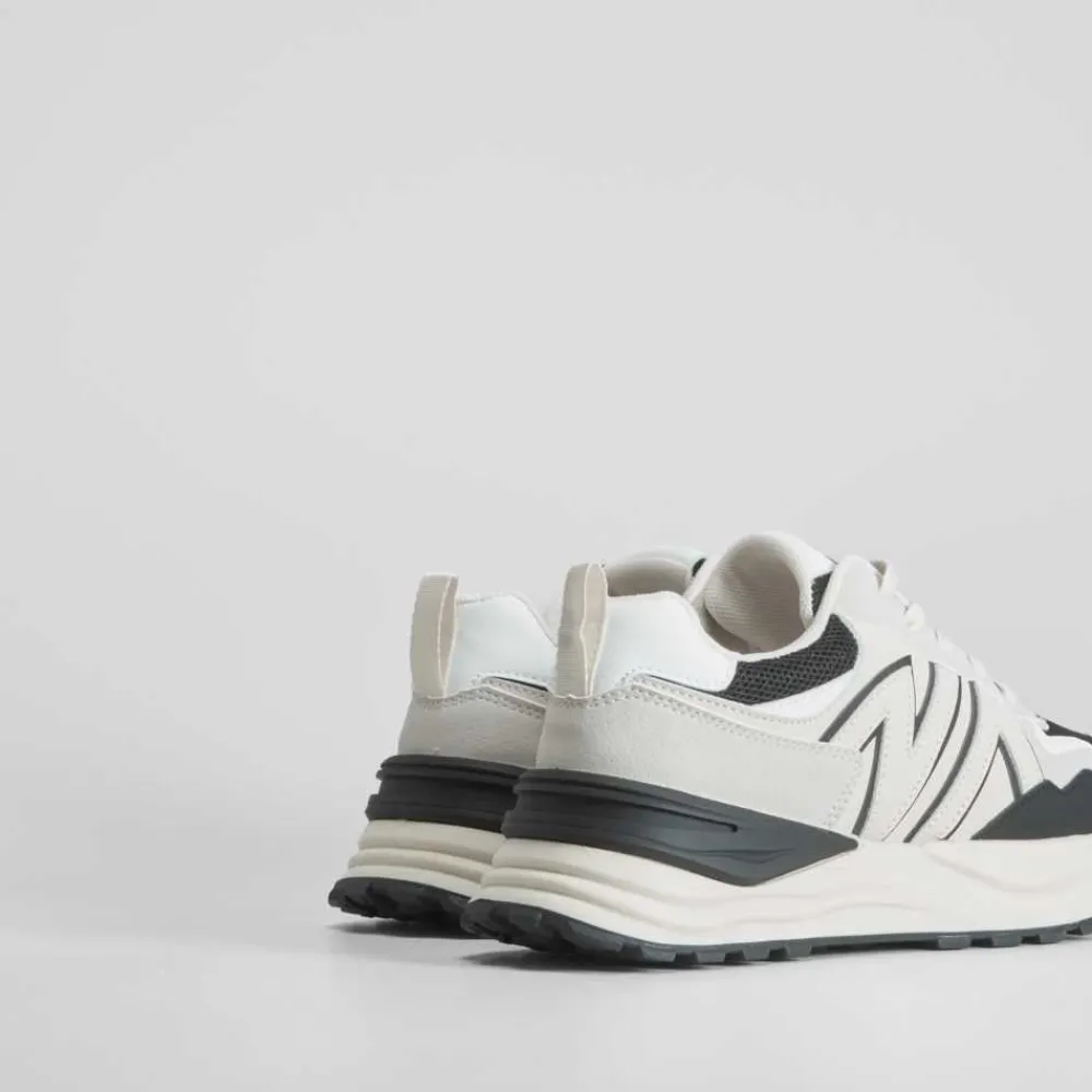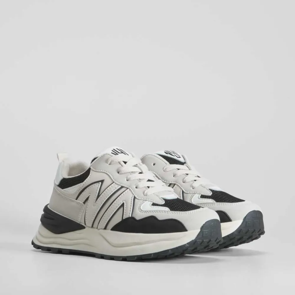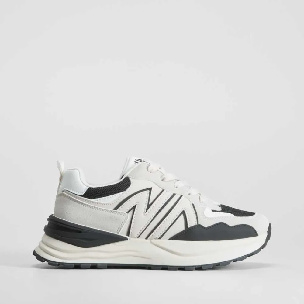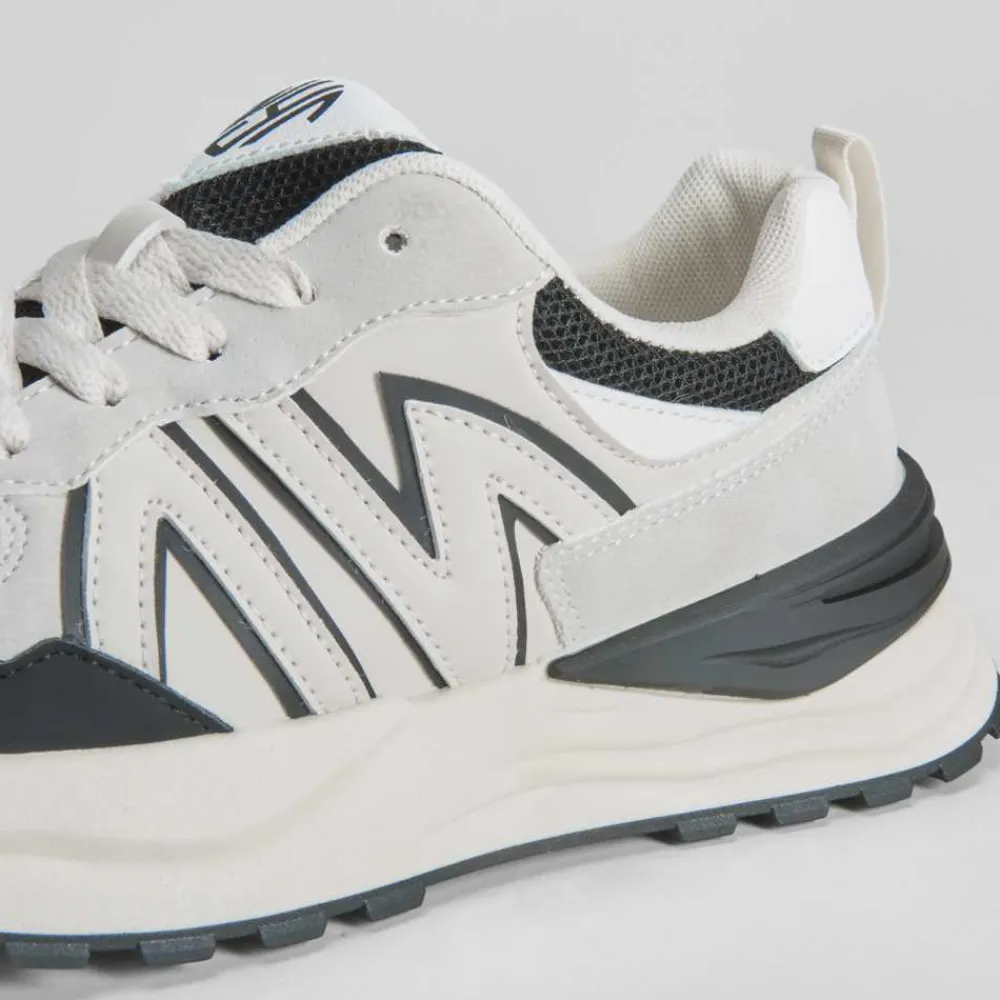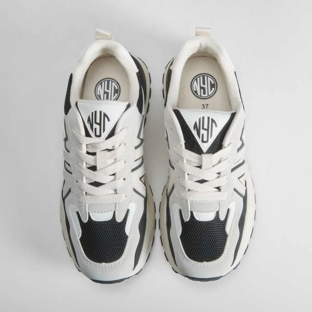 zapatilla urbana con plataforma de NYC con acabados en diferentes acabados y cierre de cordones.