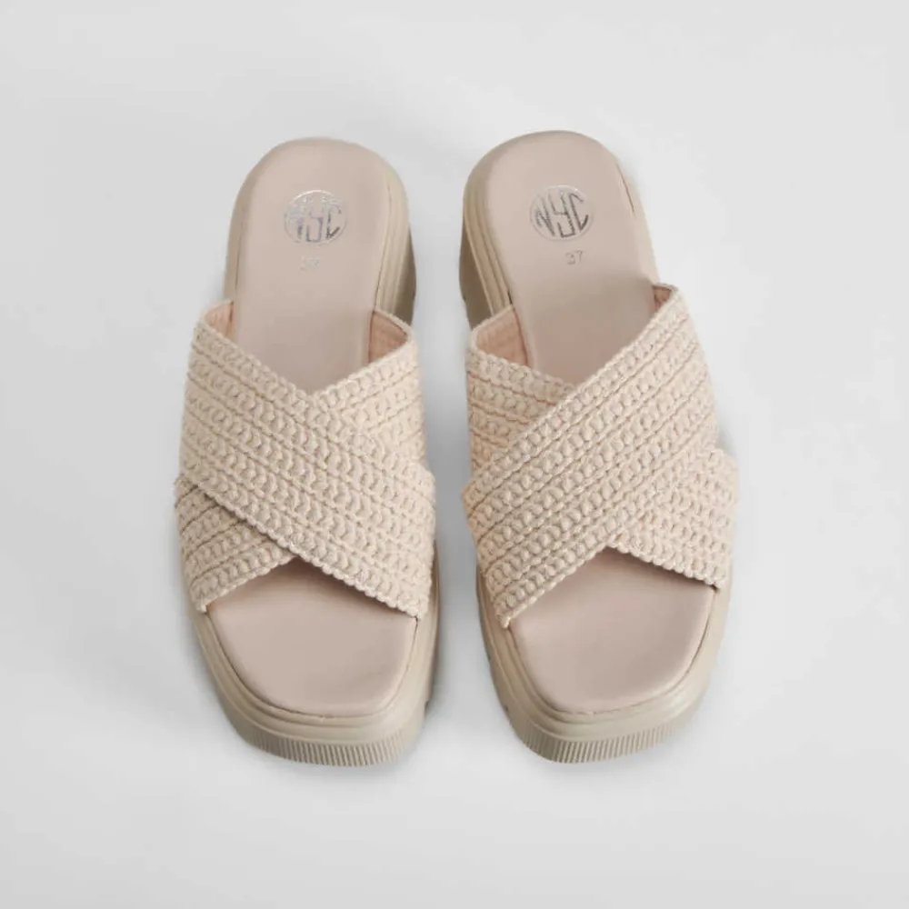 Discount Sandalia cuña chunky pala beige Mujer Sandalias Cuña