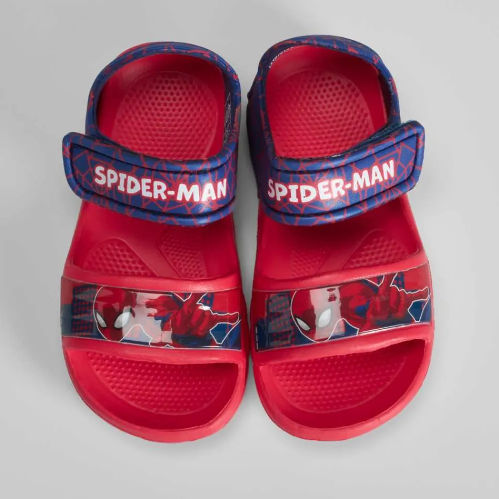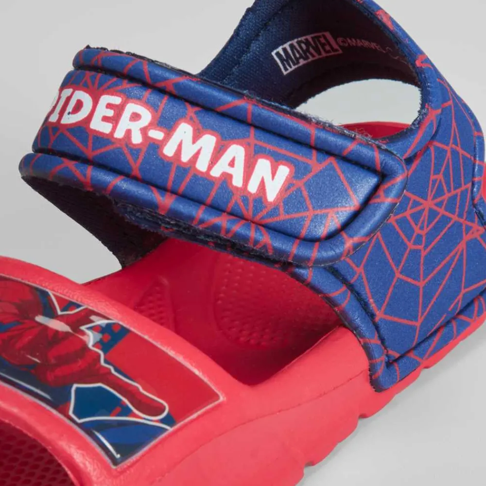 Sandalia de playa infantil en color azul y rojo de SPIDERMAN. Diseño ligero con una tira de velcro para un ajuste perfecto.