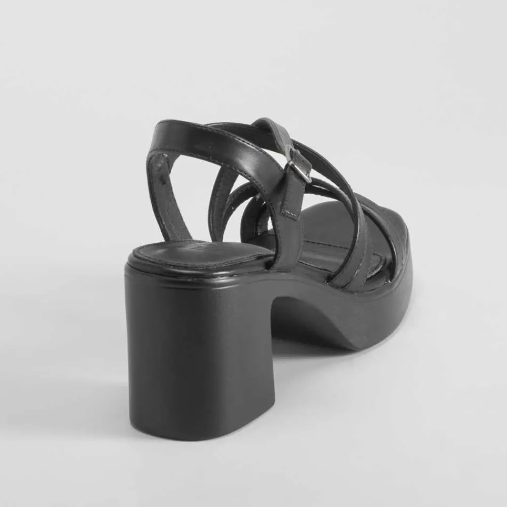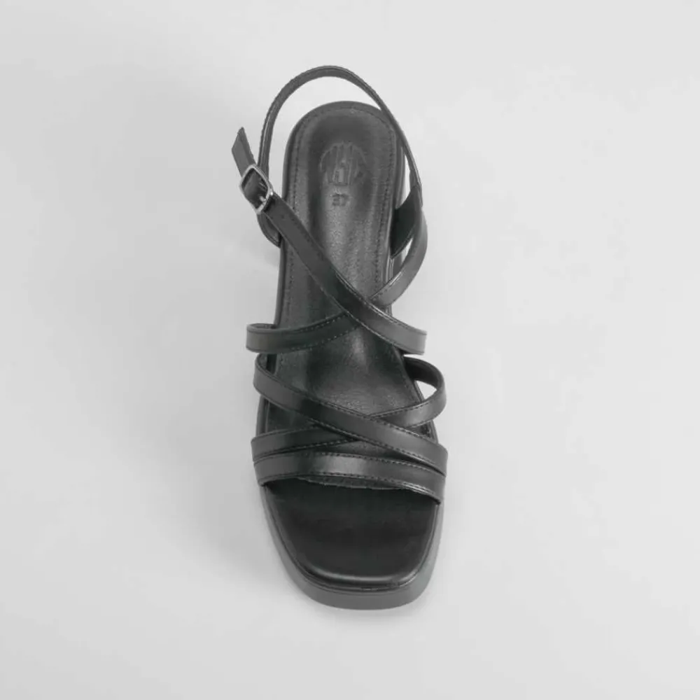 Discount Sandalia tacón tiras negra Mujer Sandalias Tacón