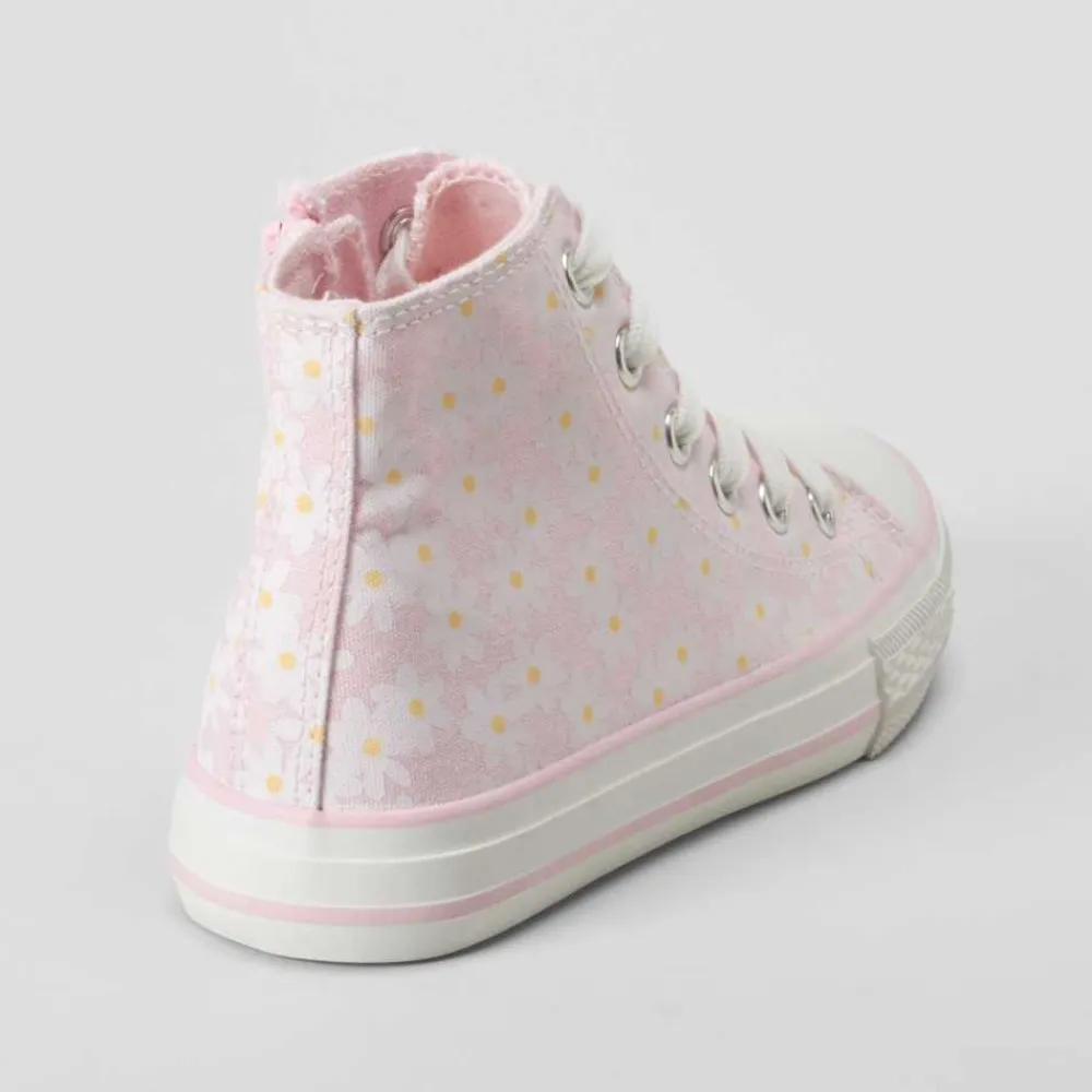 Zapatilla alta de lona margaritas rosa OH GIRL