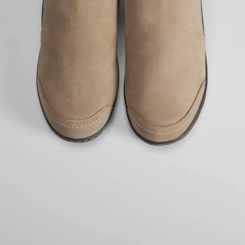Zapato cerrado de piel con cremallera COMFEET, de color beige, diseñado para un look casual con estilo y confort.