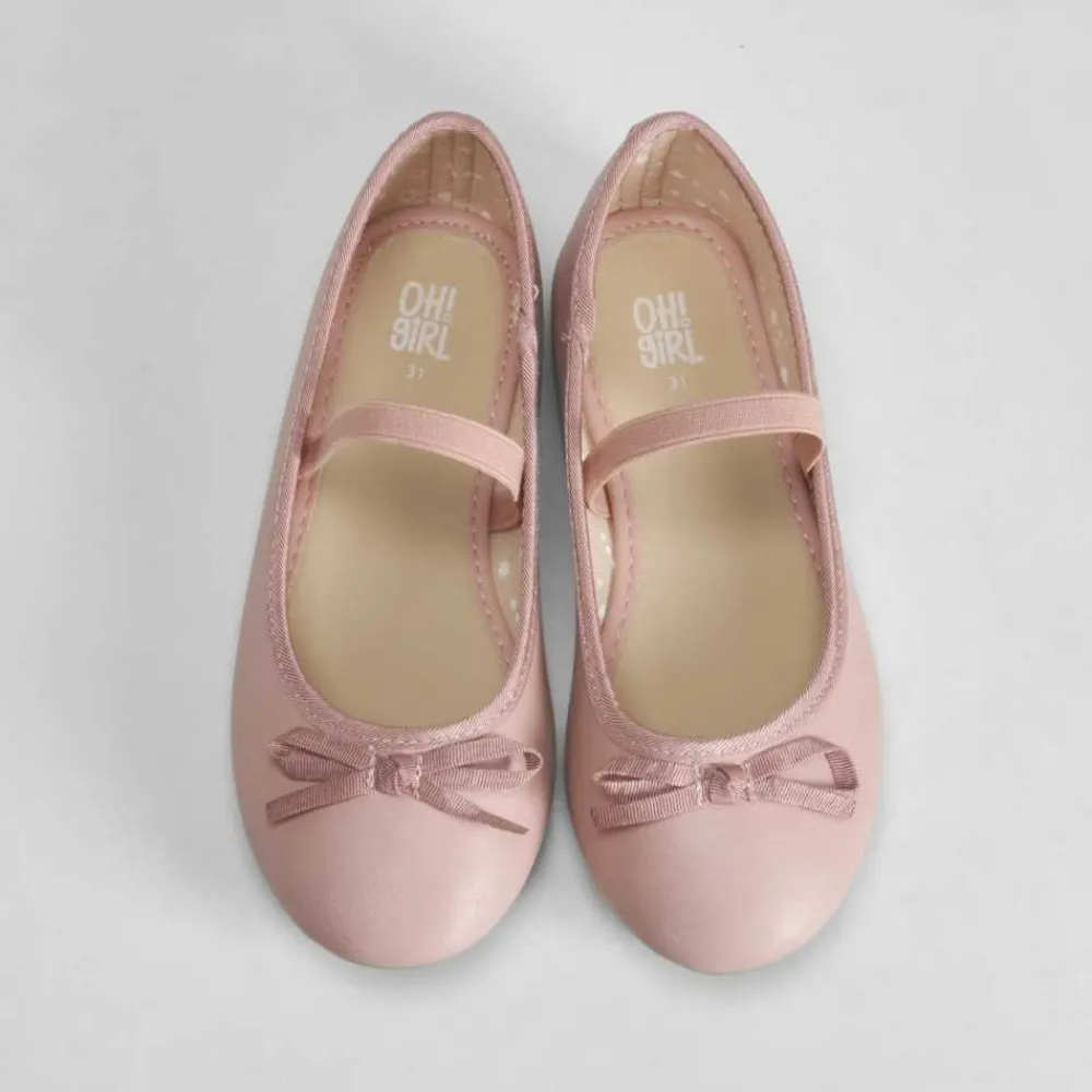 Bailarina rosa de la marca OH GIRL. Exterior liso con un lazo en la puntera y un elástico en el empeine para un mayor ajuste.
