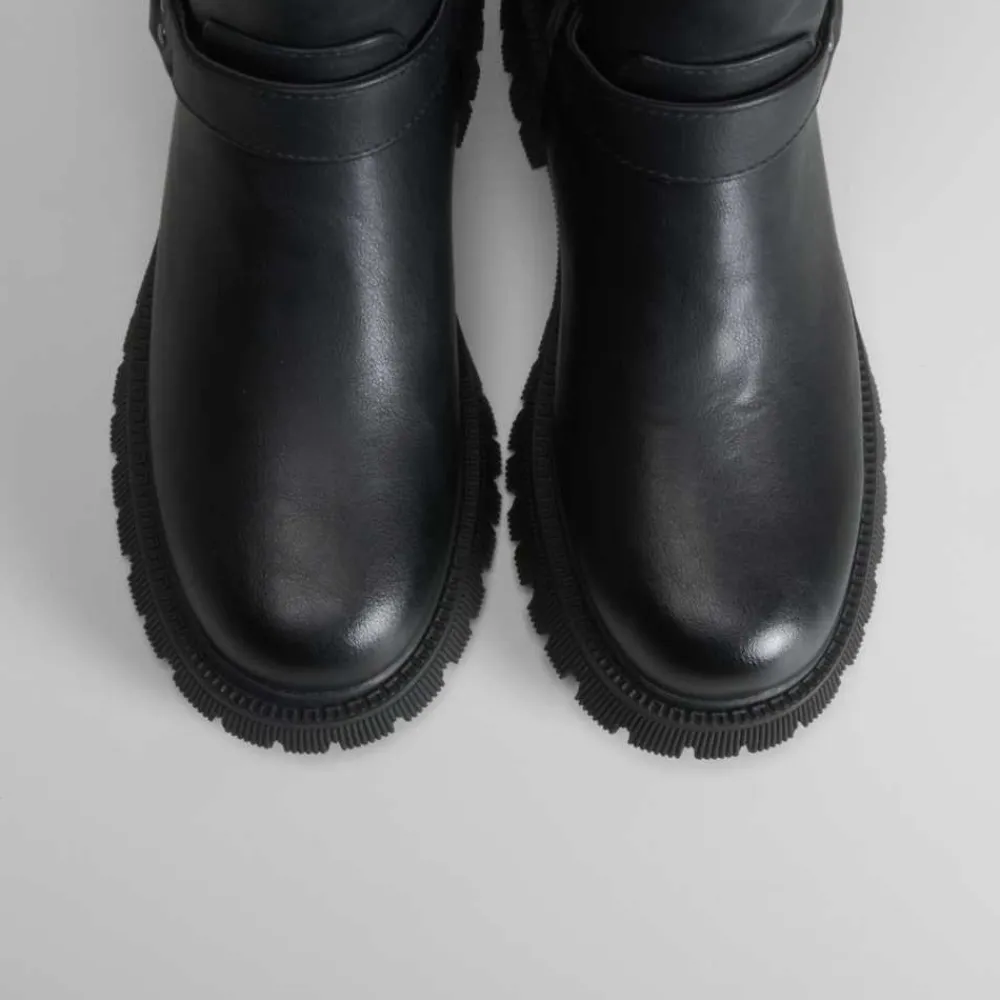 El botín biker con hebilla de XTI es una bota cómoda diseñada para el día a día. Confeccionada en polipiel y con un detalle de hebillas, su suela es dentada y cuenta con cierre de cremallera.