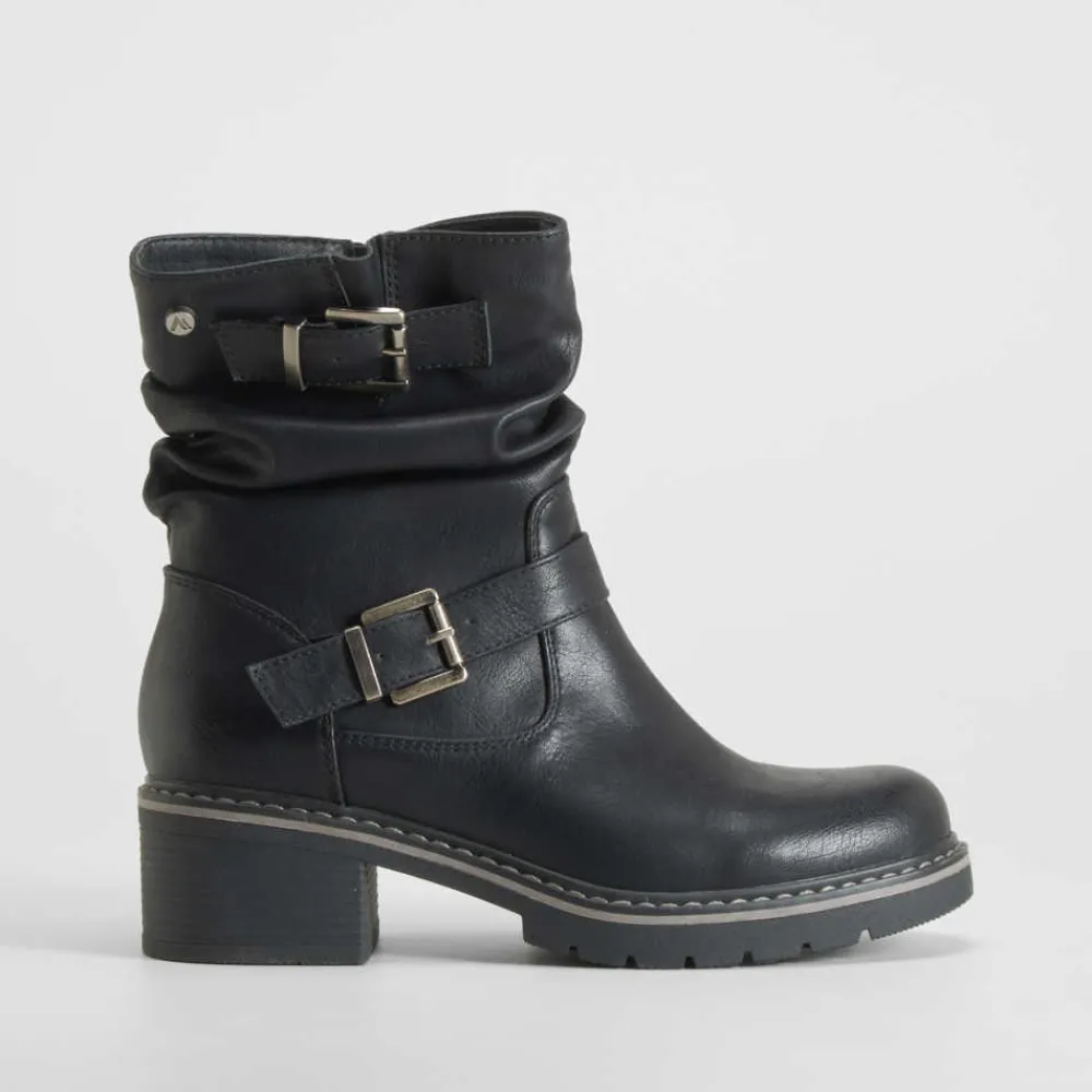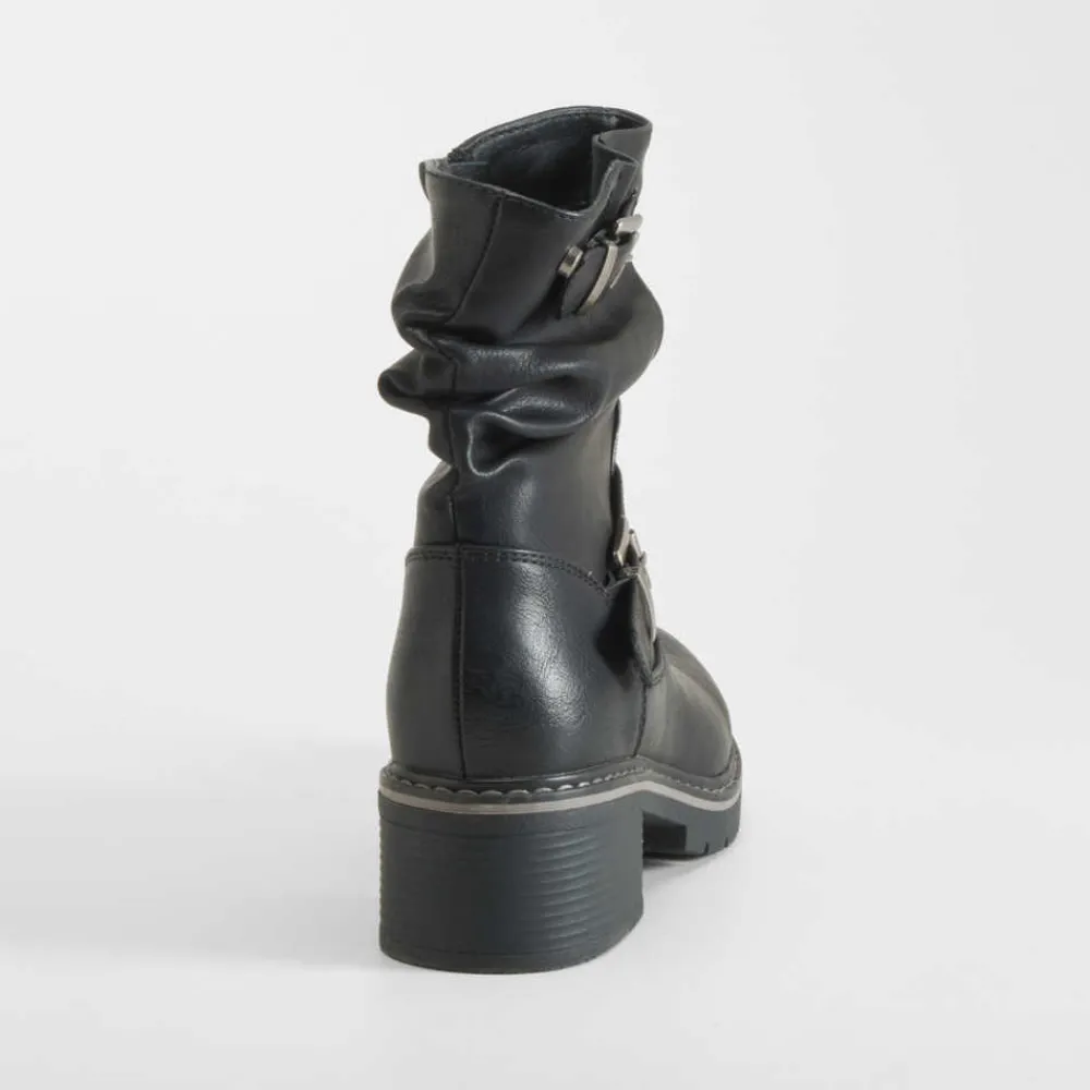 Hot Botín biker doble hebilla negro Mujer Botines Tacón