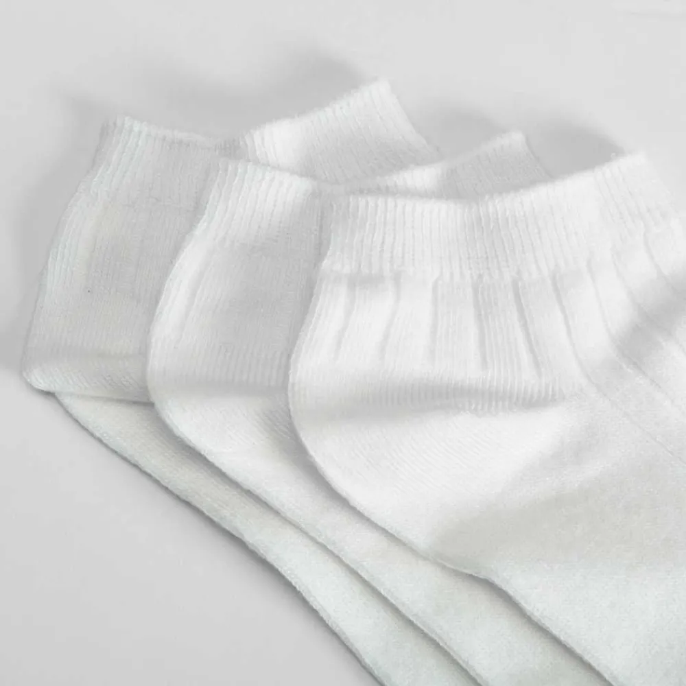 Pack de tres pares de calcetines invisibles en canalé blancos para mujer.