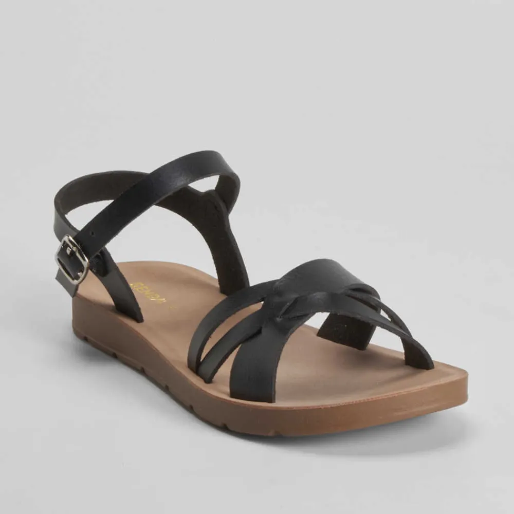 Hot Sandalia tiras cruzada negra Mujer Sandalias Planas