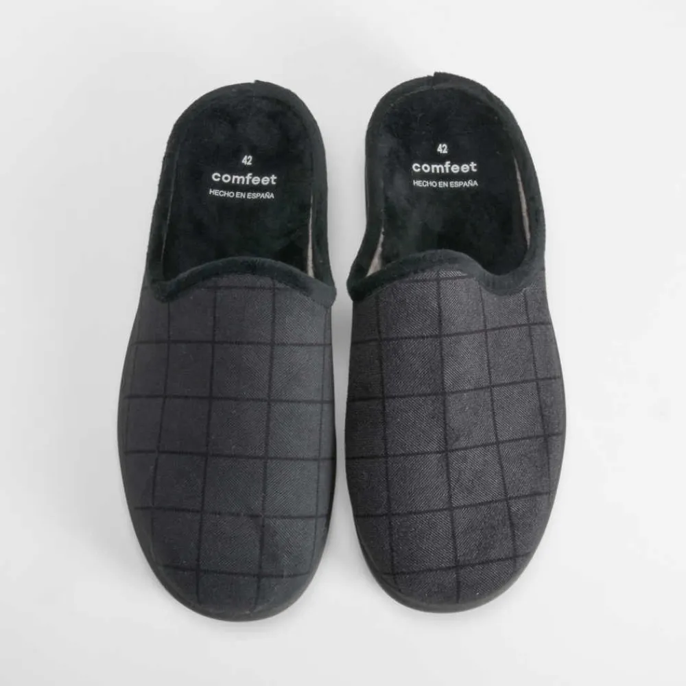 Hot Zapatilla casa cuadros negra Hombre Zapatillas Abiertas