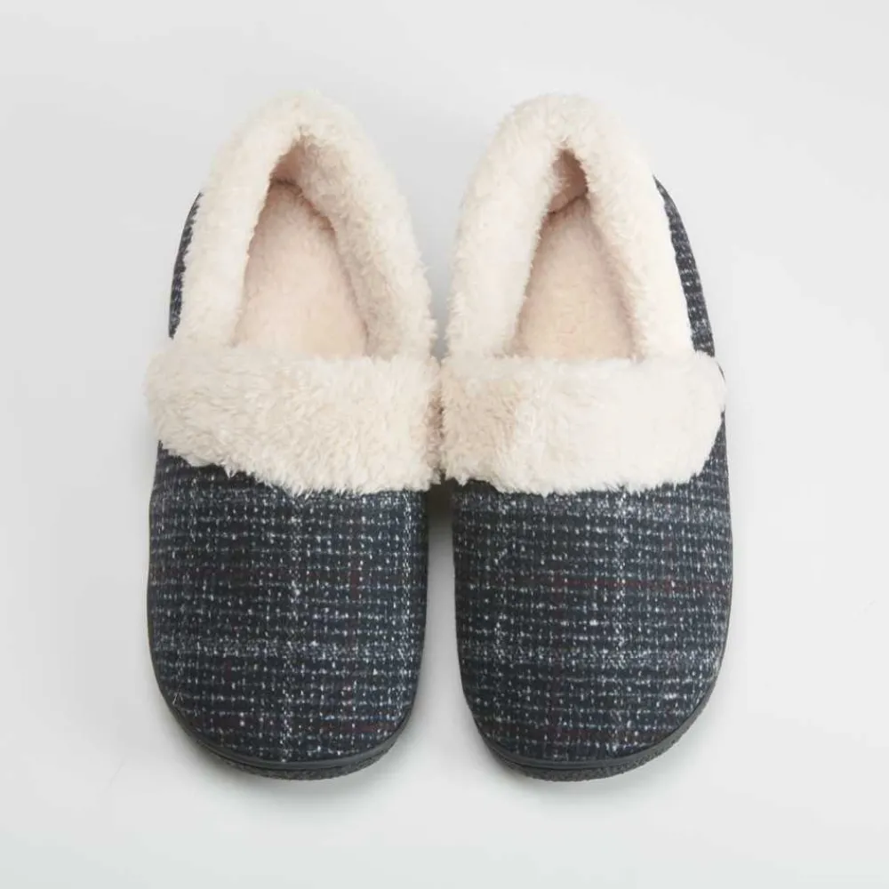 Zapatillas de casa cerradas de la marca OLYNE. Modelo con estampado de cuadros en color azul.