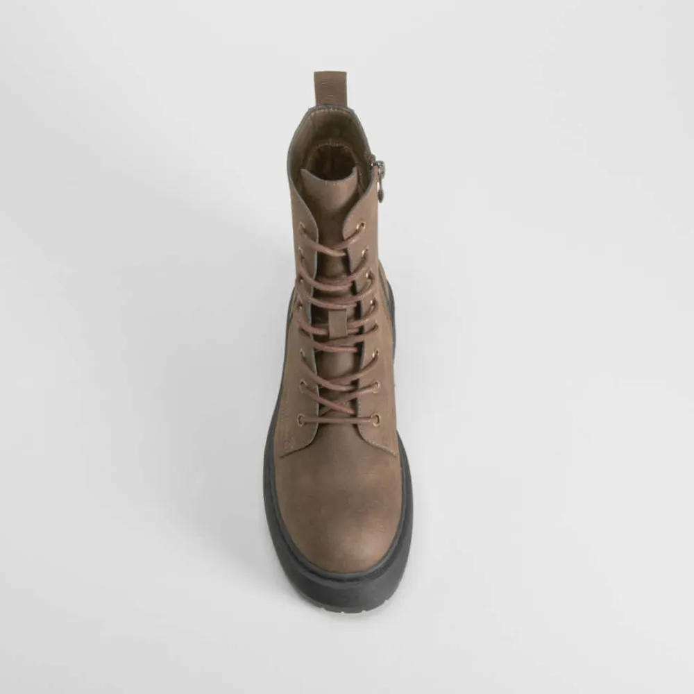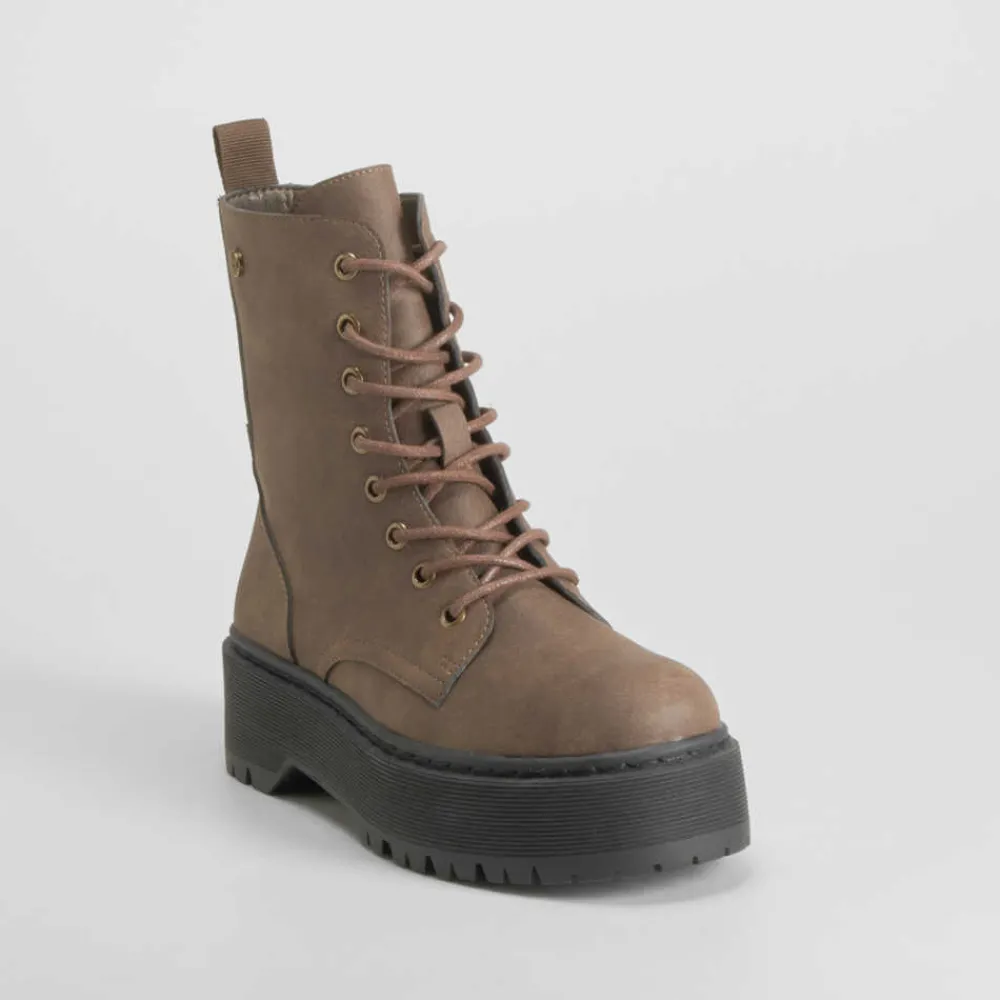 New Botín militar plataforma marrón Mujer Botines Planos