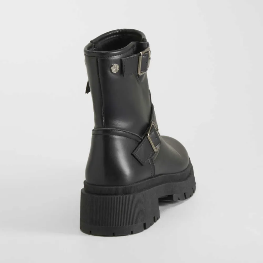 New Botín motero negro Mujer Botines Planos