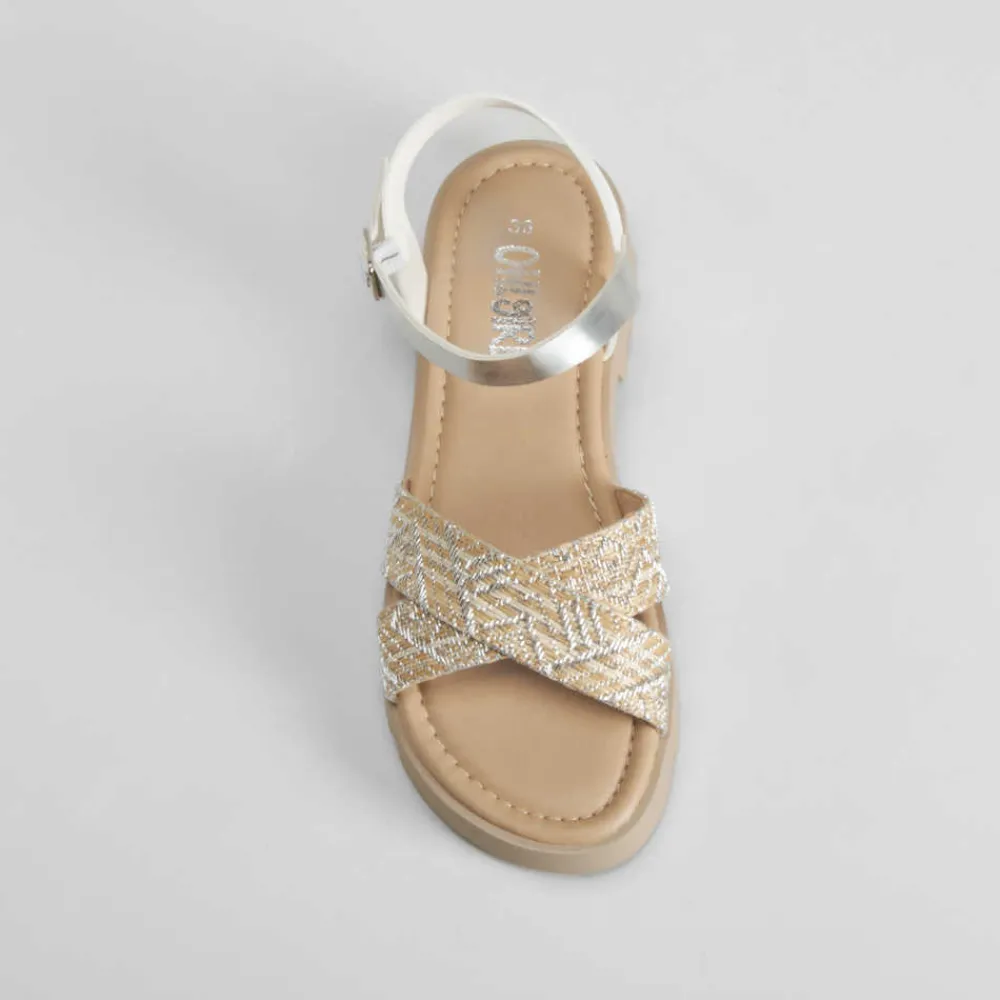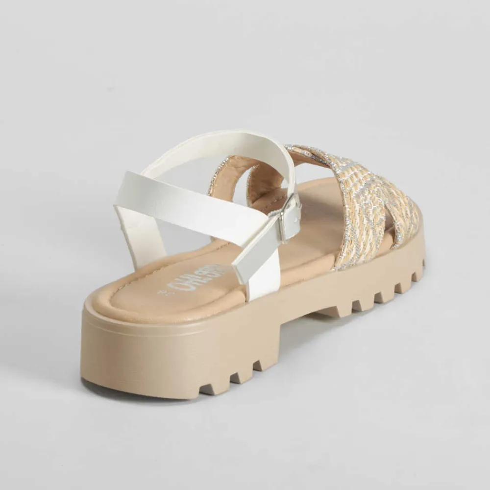 New Sandalia cruzada rafia blanca OH GIRL Sandalias