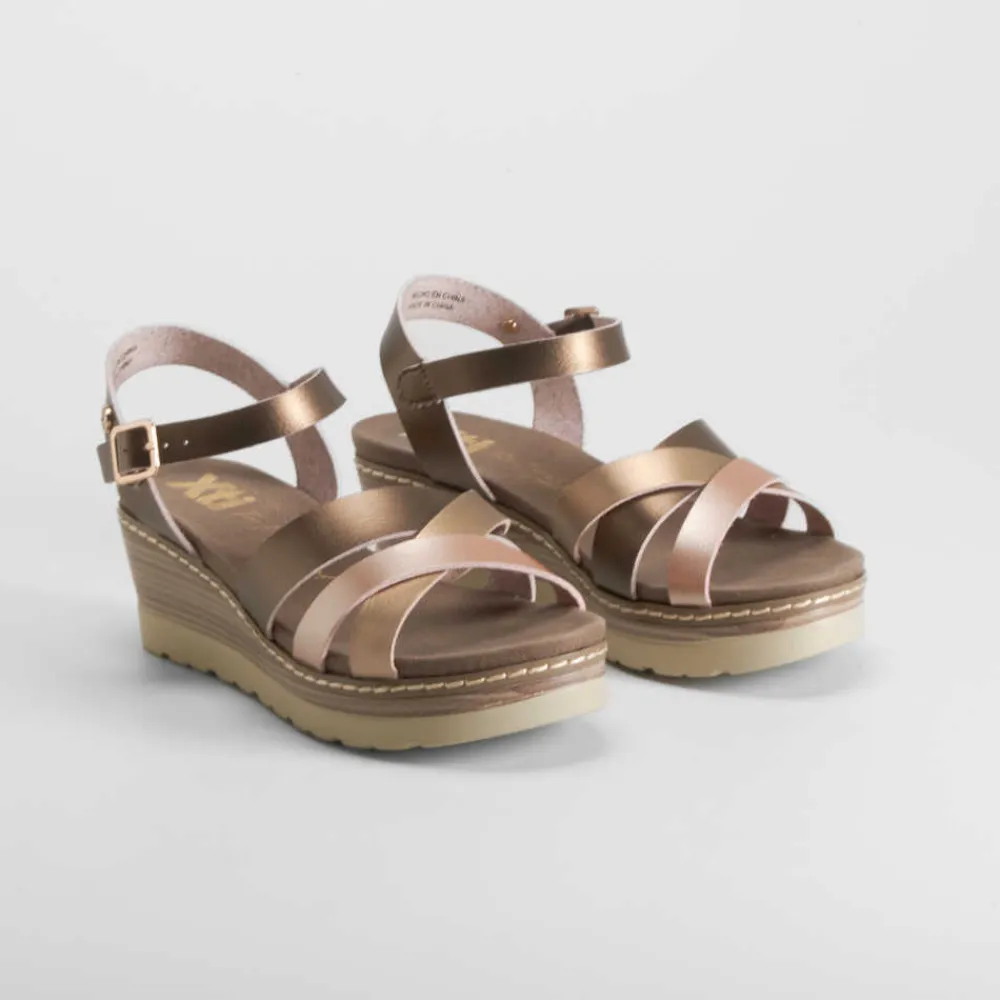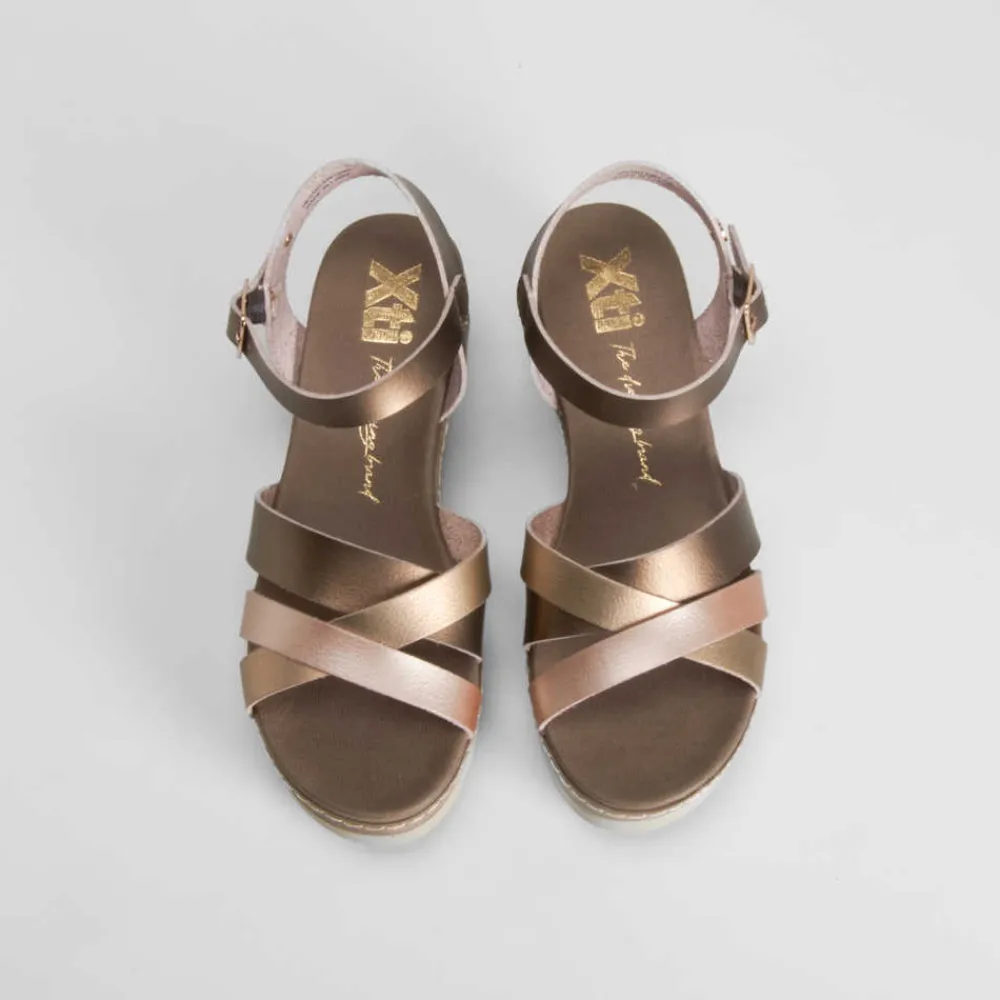 New Sandalia cuña tiras bronce Mujer Sandalias Cuña