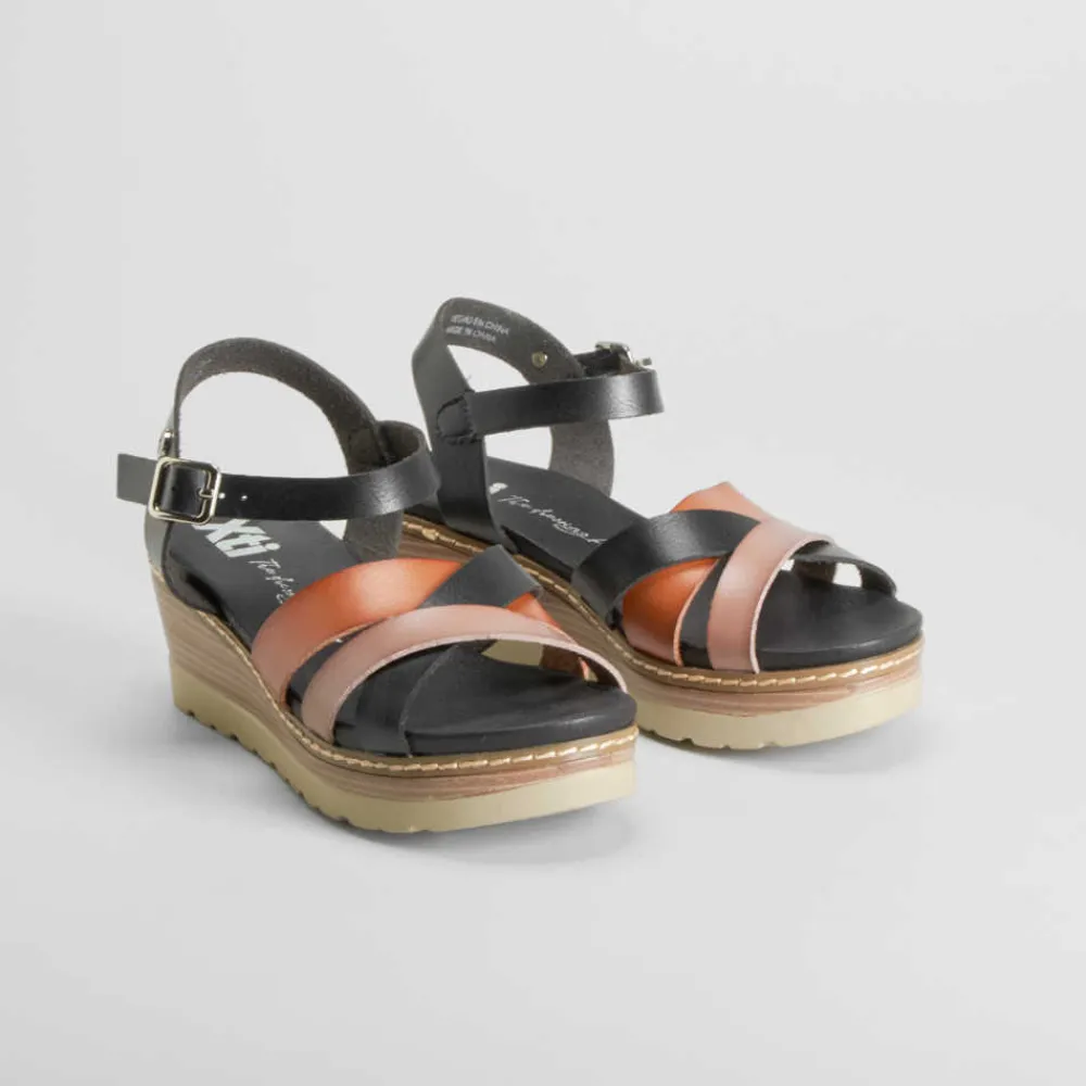 New Sandalia de cuña de tiras marrón y negra Mujer Sandalias Cuña