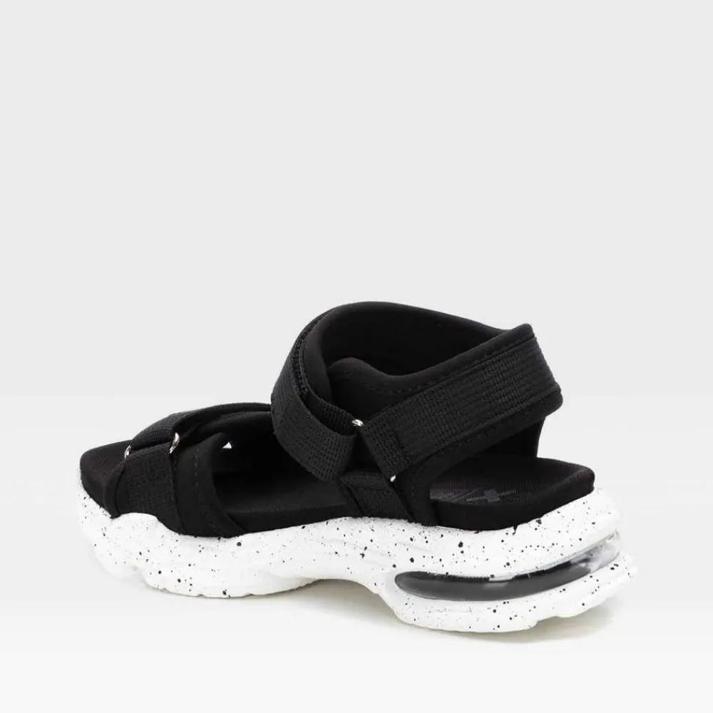 Sandalia deportiva negro con cámara de aire de la marca XTI para niñas. Modelo con dos velcros ajustables y suela con plataforma baja y cámara de aire.