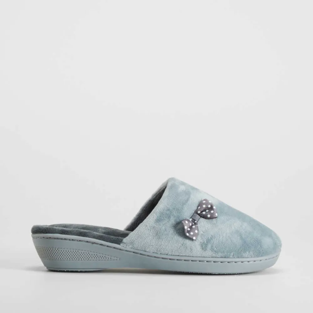 Zapatilla casa lazo y topos gris OLYNE