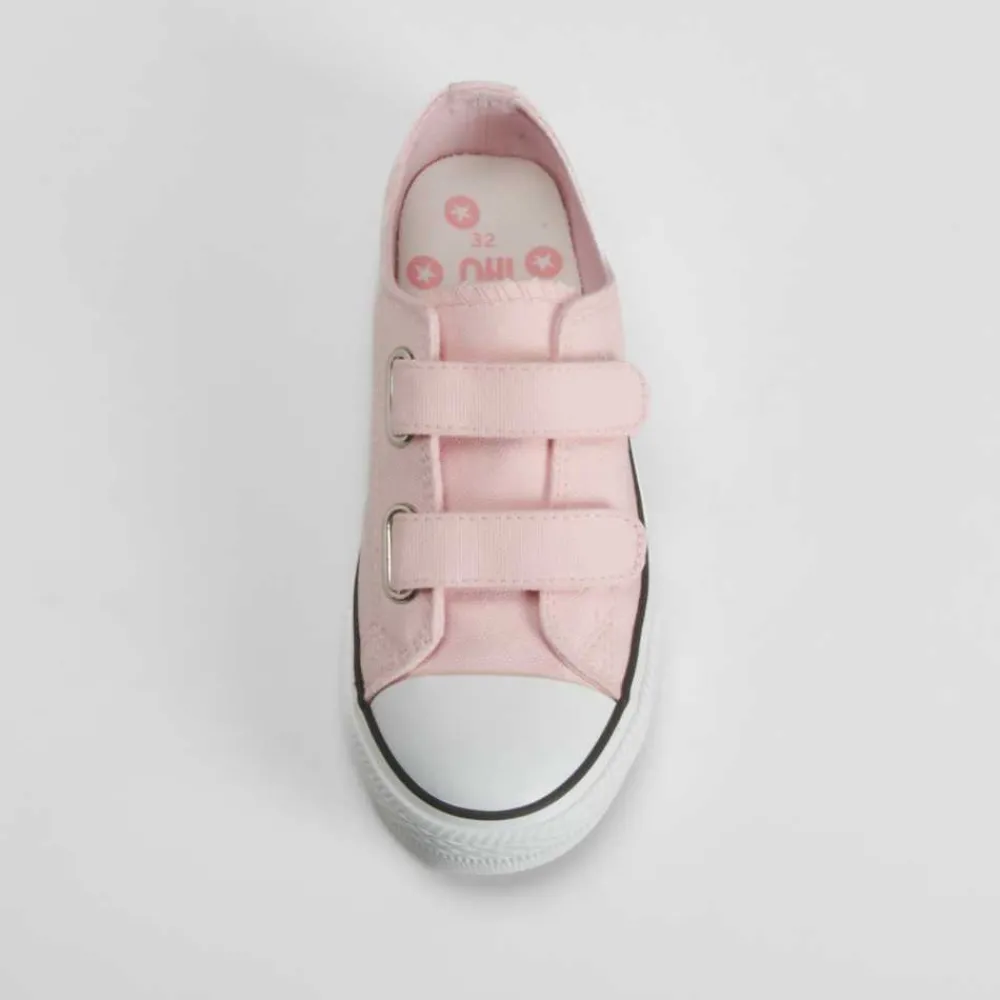 Zapatilla de lona de la marca OH GIRL. Exterior en color rosa, cierre de velcro y puntera reforzada de goma.