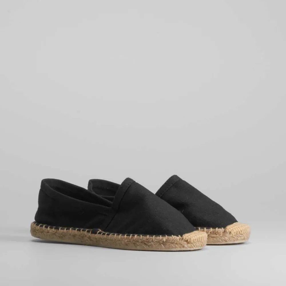 Alpargata básica de mujer en color azul marino y piso de esparto de la marca COCONUT DRIVE. Recomendamos coger una talla más de la que utilices habitualmente.